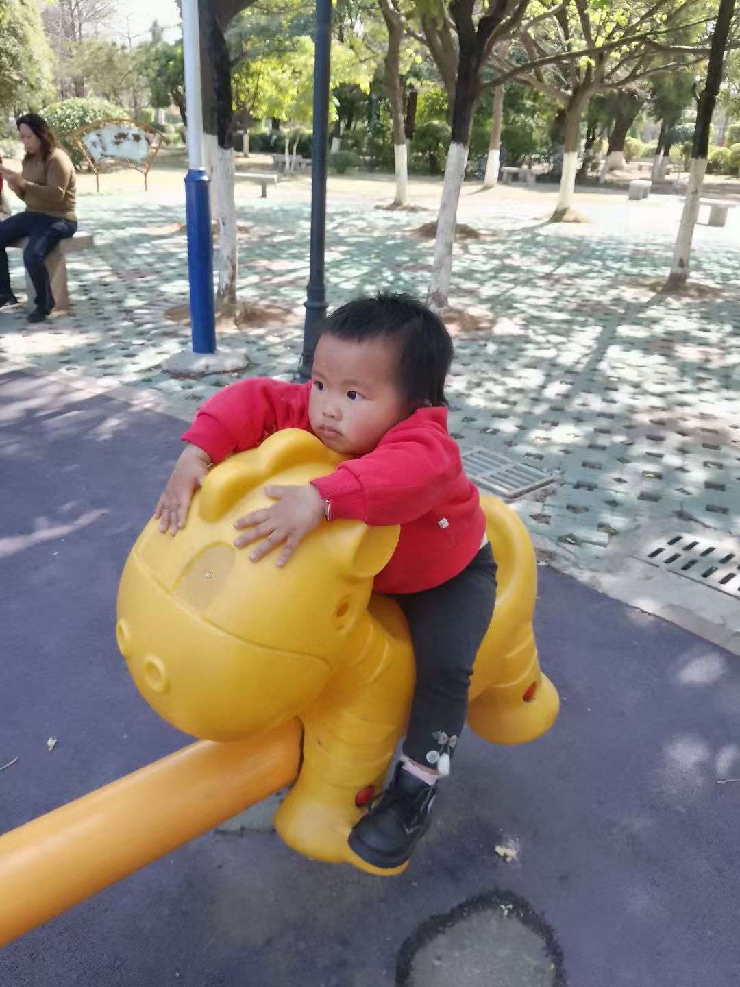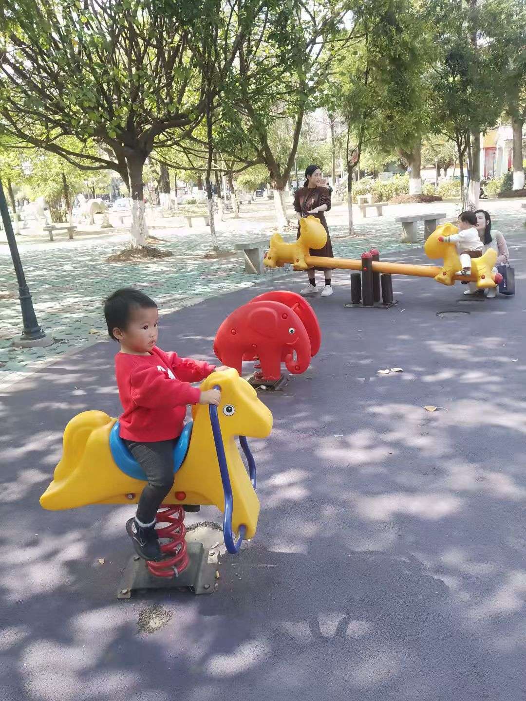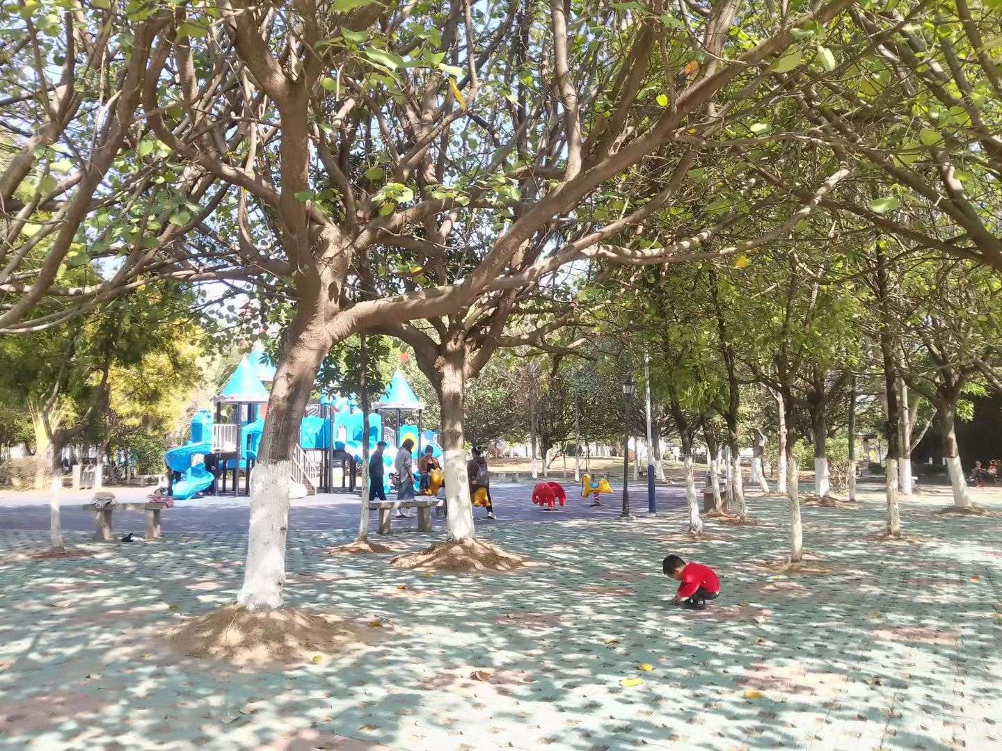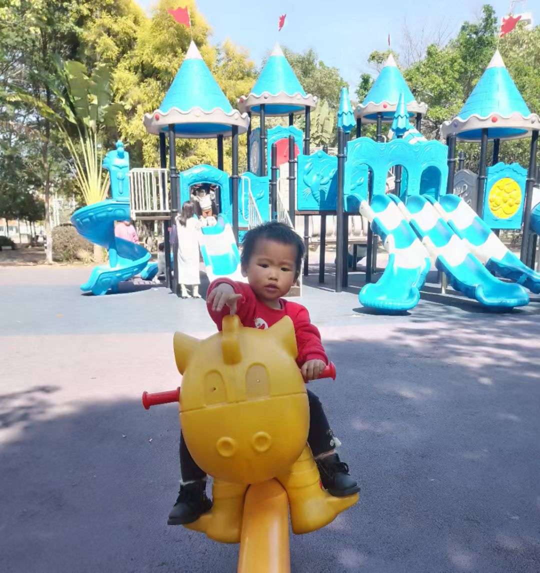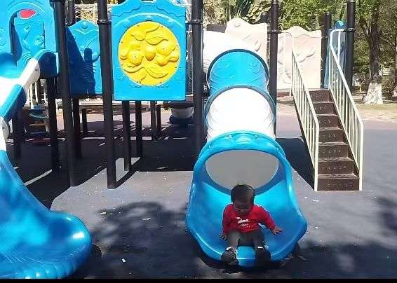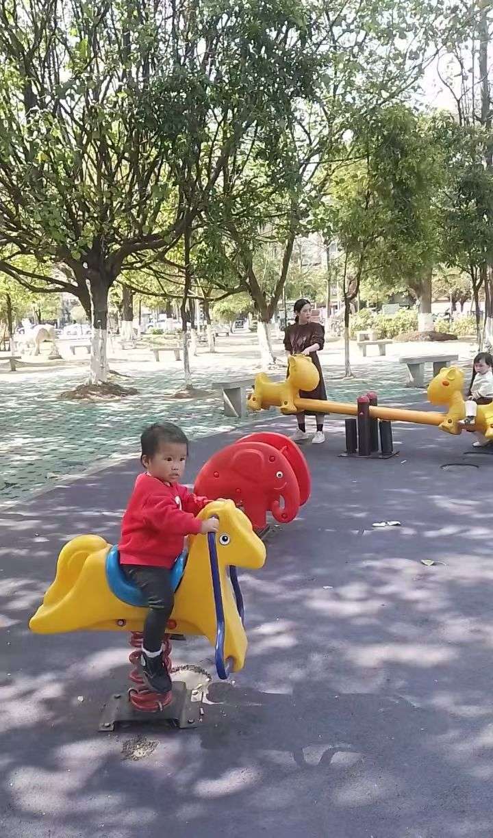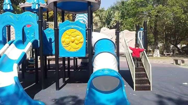 回家的路上又带小朋友去公园玩玩滑滑梯……