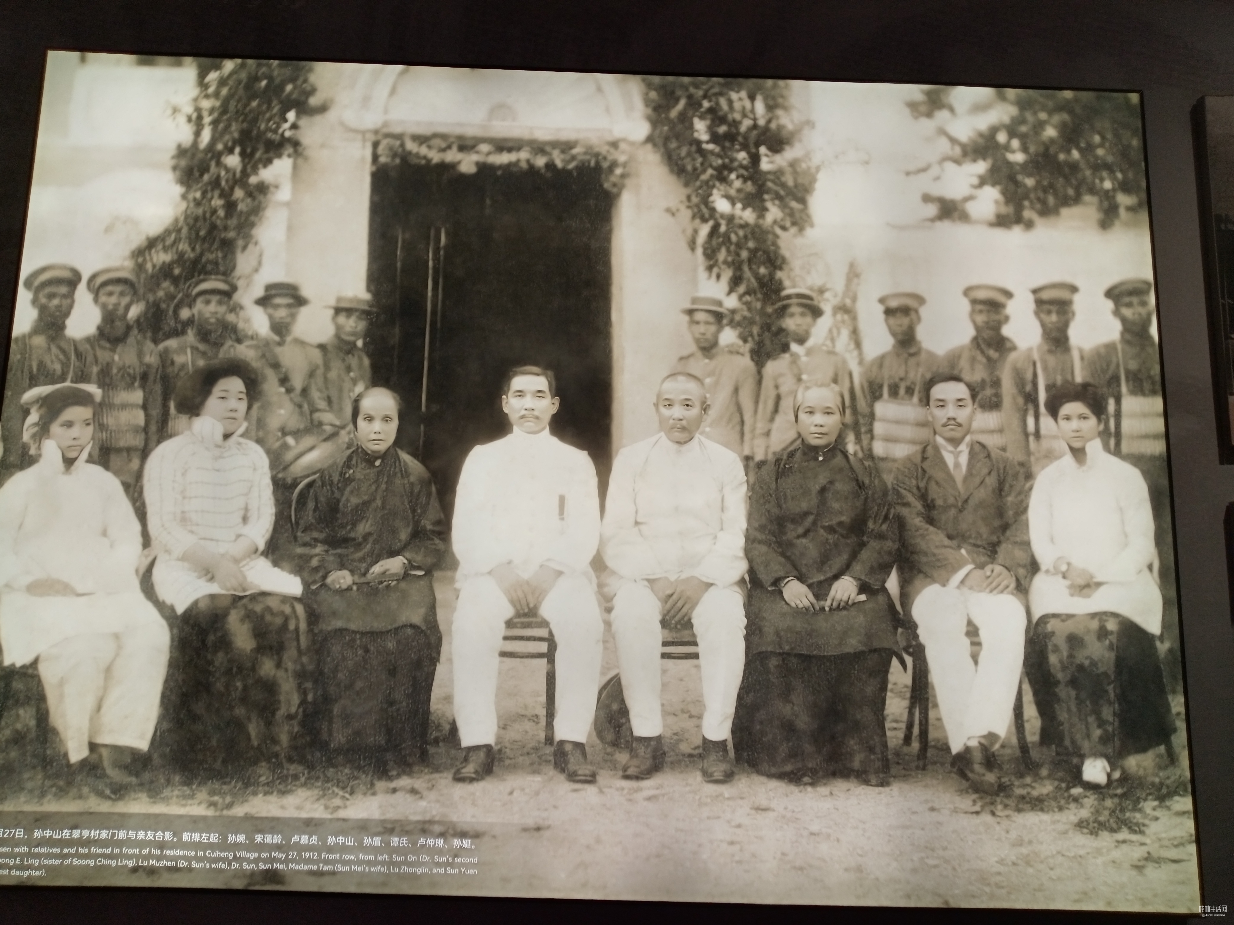 珍贵的历史照片,孙中山?年与妻子及父母在故居前的合影。