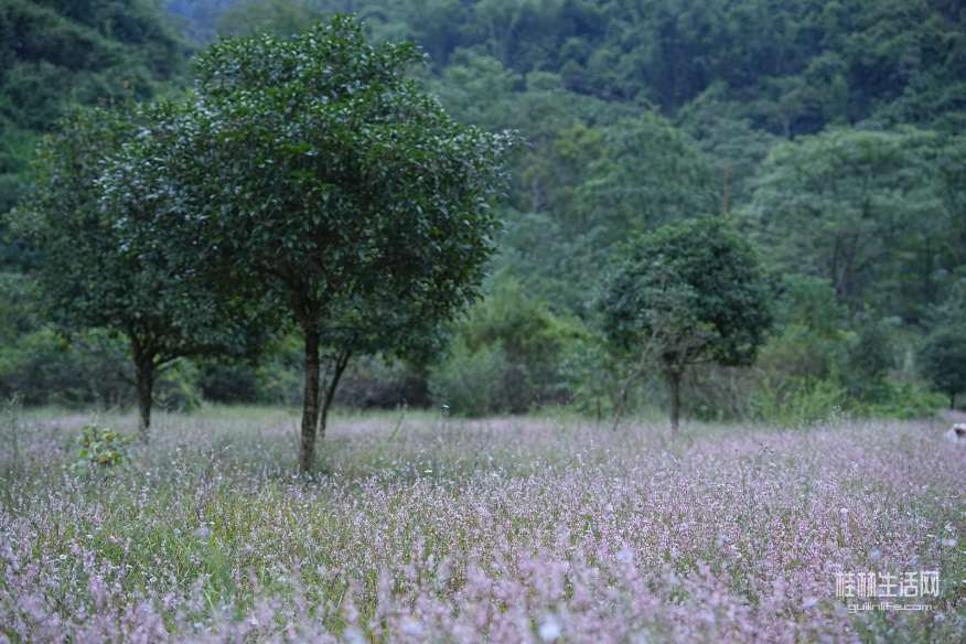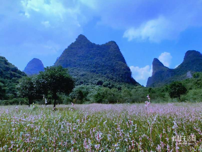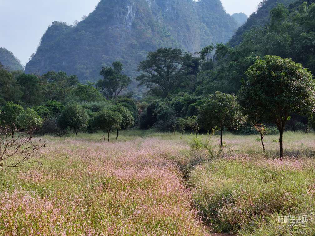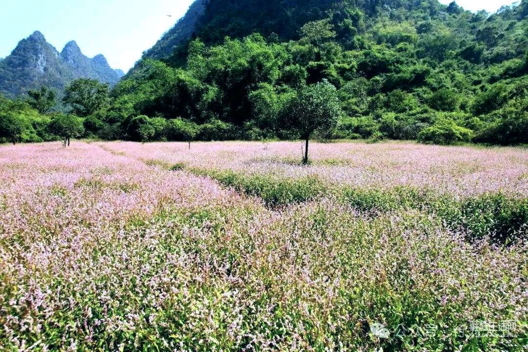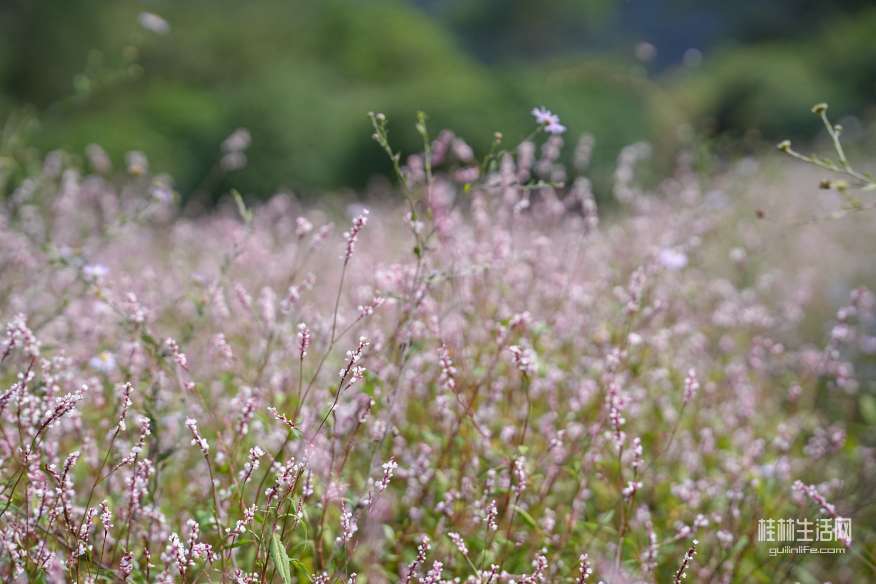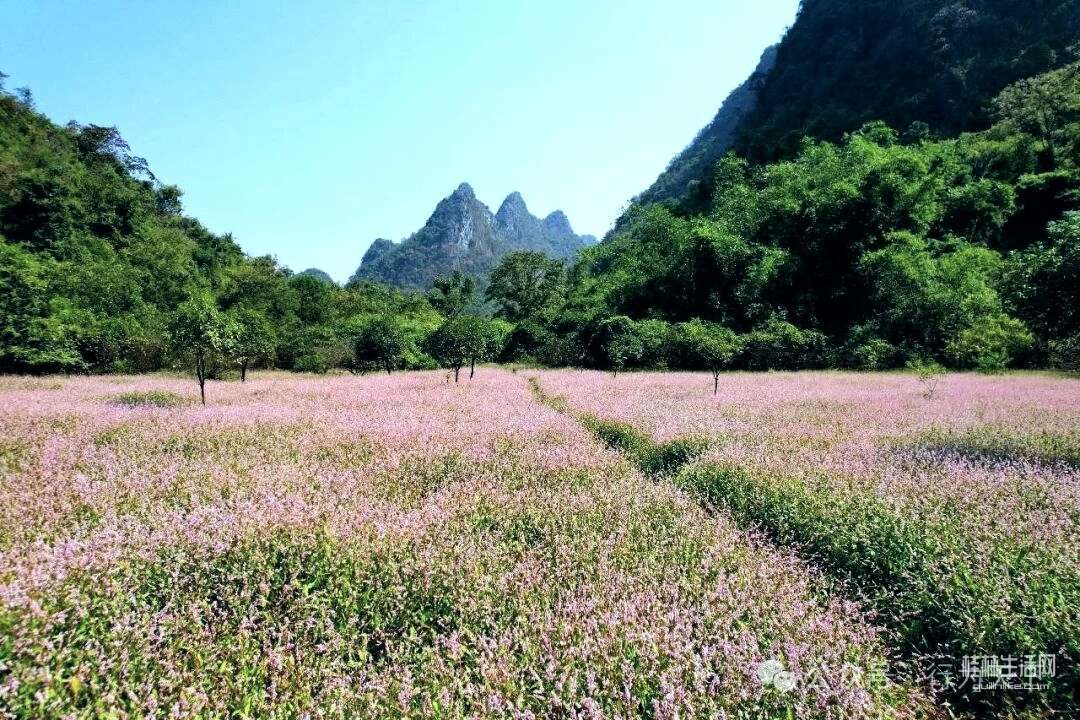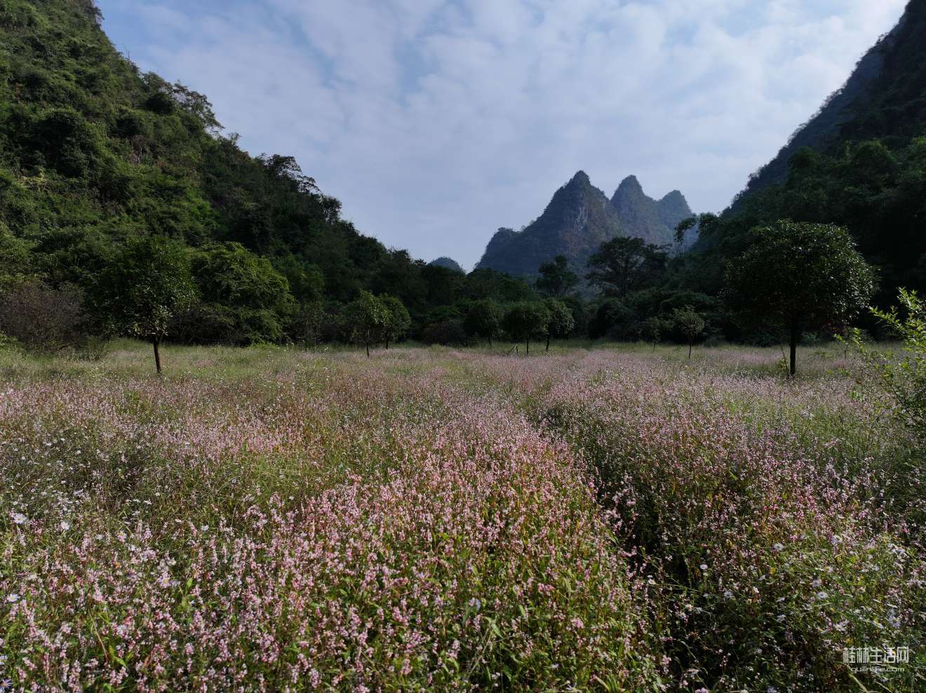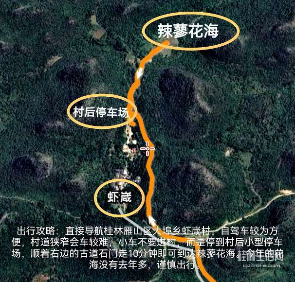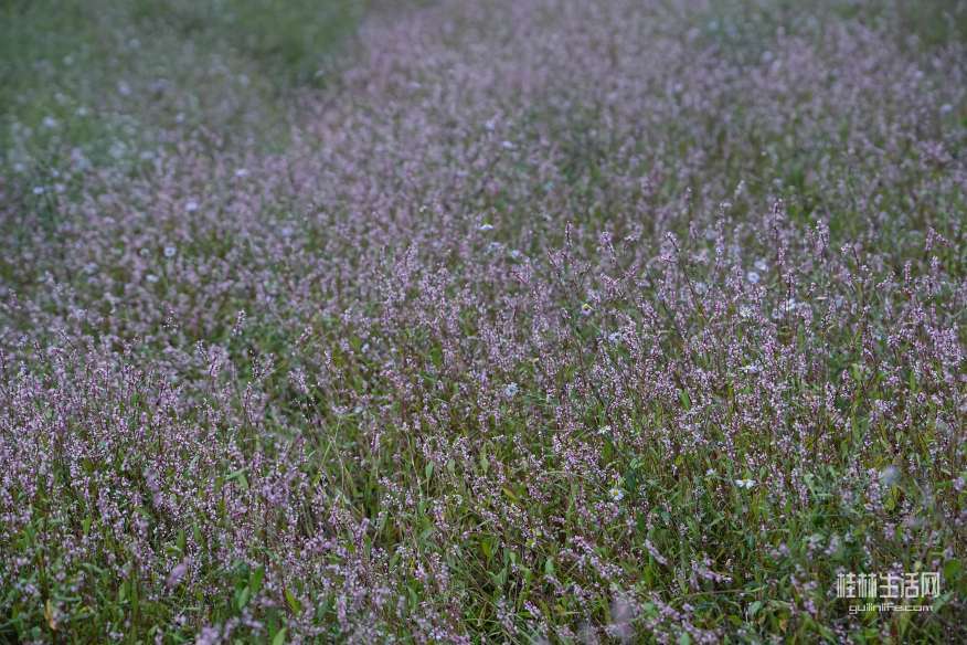 出行攻略:直接导航桂林雁山区大埠乡虾嵅村。自驾车较为方便,村道狭窄会车较难,小车不要进村,而是停到村后小型停车场,顺着右边的古道石门走10分钟即可到达辣蓼花海。