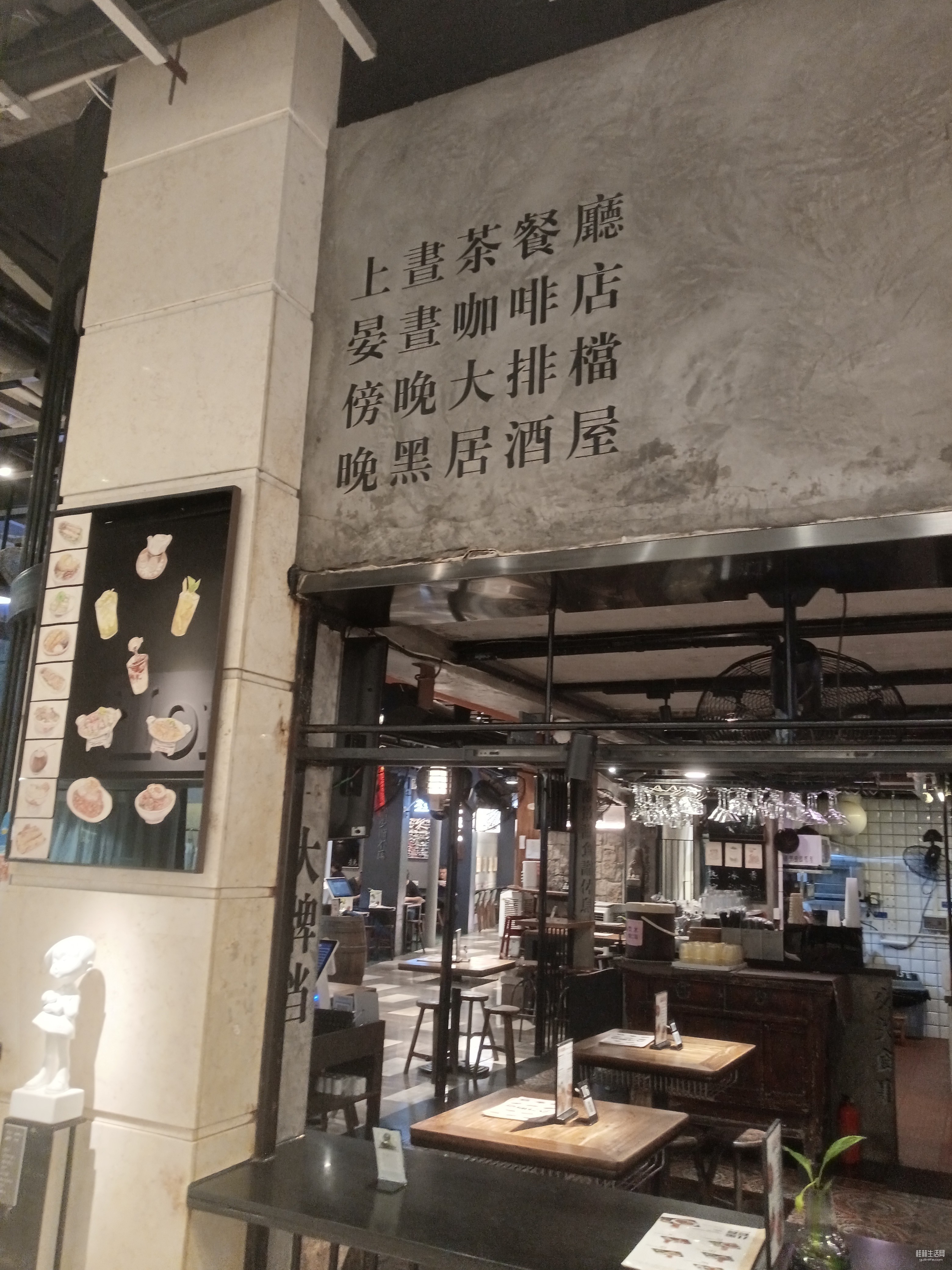 上书茶餐厅,多功能呀,好洋气!晏书咖啡店,傍晚大排档,晚黑居酒屋。
