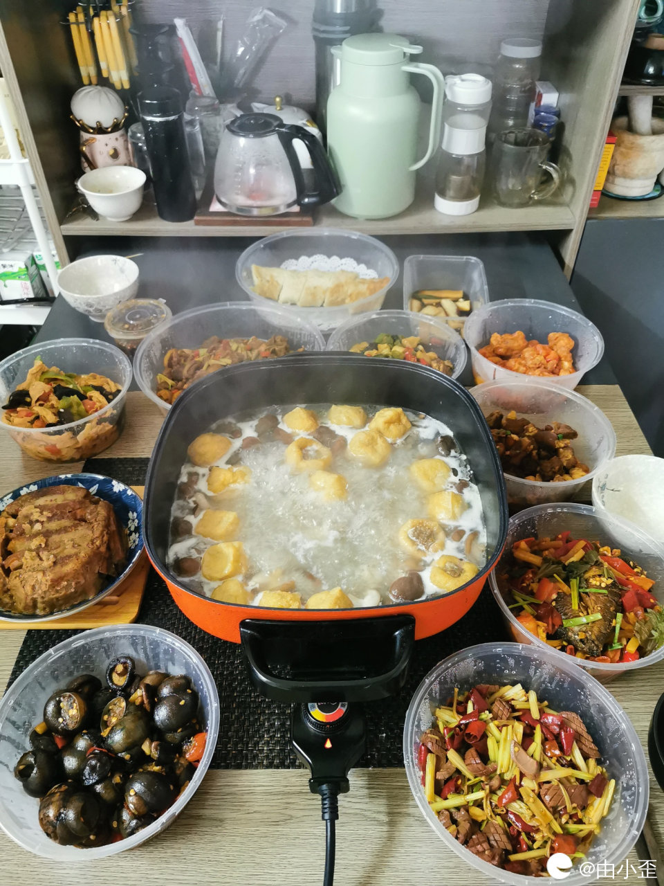 杨廷鹤 发表于 2024-02-12 16:12 三个人吃那么多。吃光用光身体健康。 我和老婆二个人就烫了点鸡和豆腐丸子,炒了一盘菜花,就算过年了。