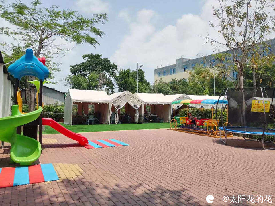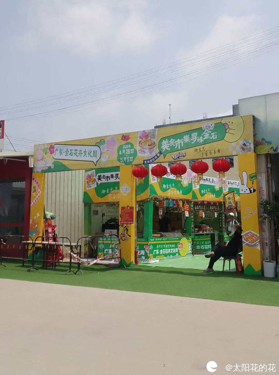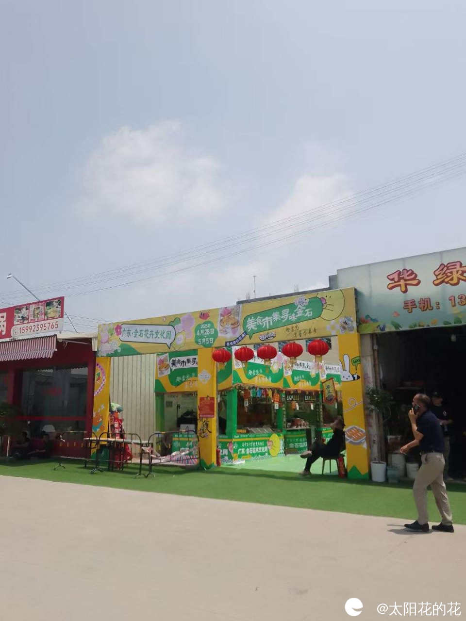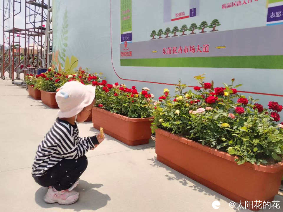 花卉市场除了展示花草还举办了美食活动,旁边还有小朋友玩的游乐场……