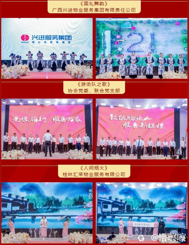 协会各单位职工为大家表演了精彩的文艺节目,表达了各会员单位对物业行业的祝福和热爱,充分展现出桂林物业人艰苦奋斗、积极进取的良好精神风貌。