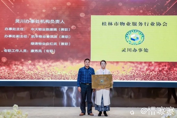 灵川县住建局文昌耀股长颁发灵川办事处牌匾