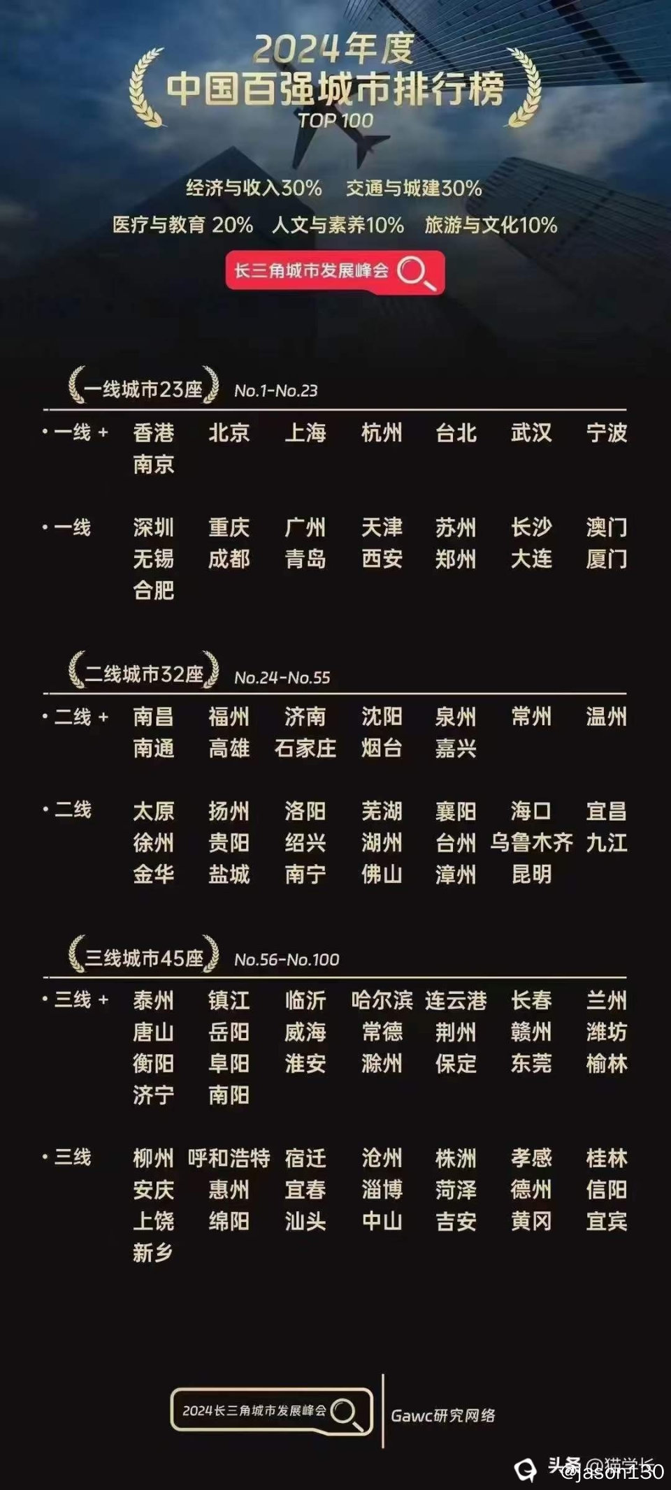 长三角发的榜单,怪不得杭州南京取代广州深圳进了一线