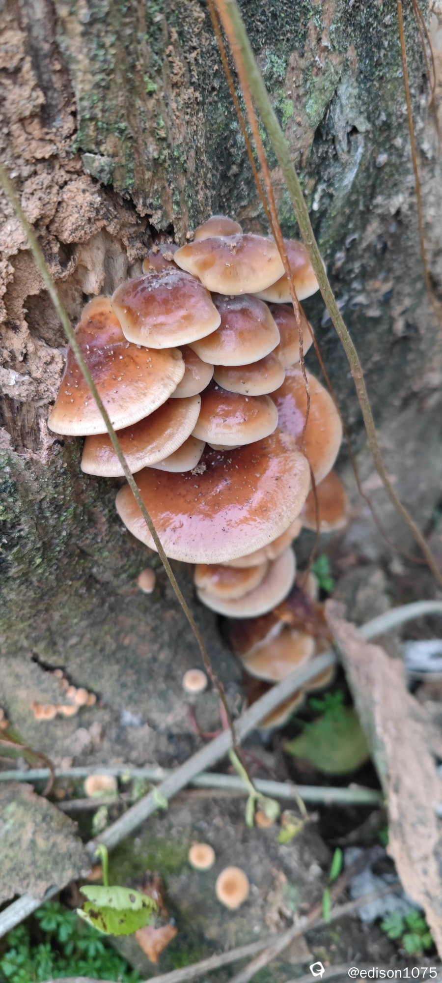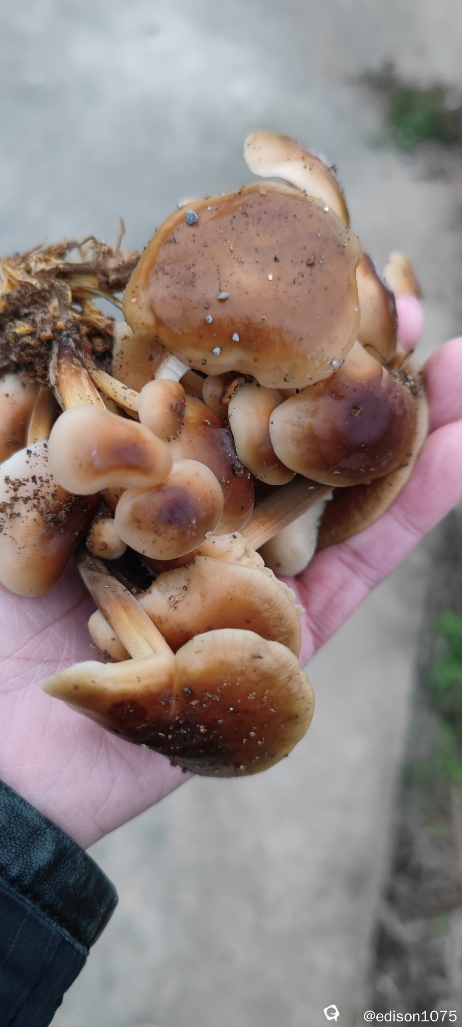 小时候老人传的经验,只要成堆的菌子都有毒,不能吃,