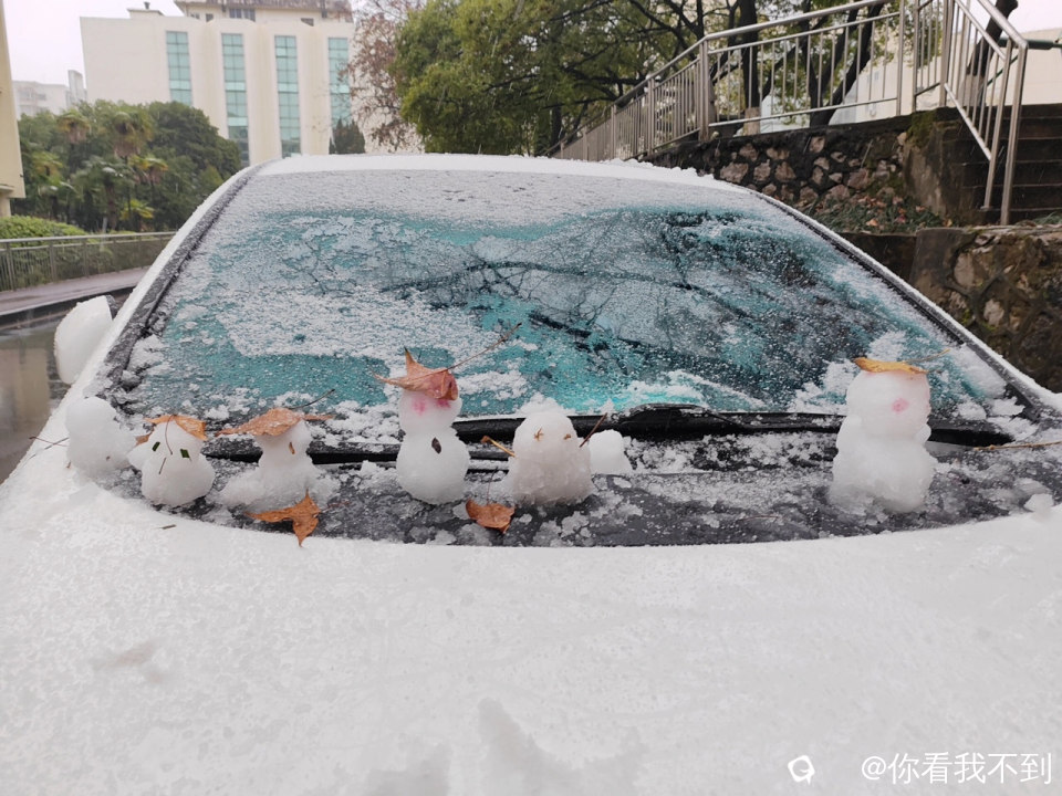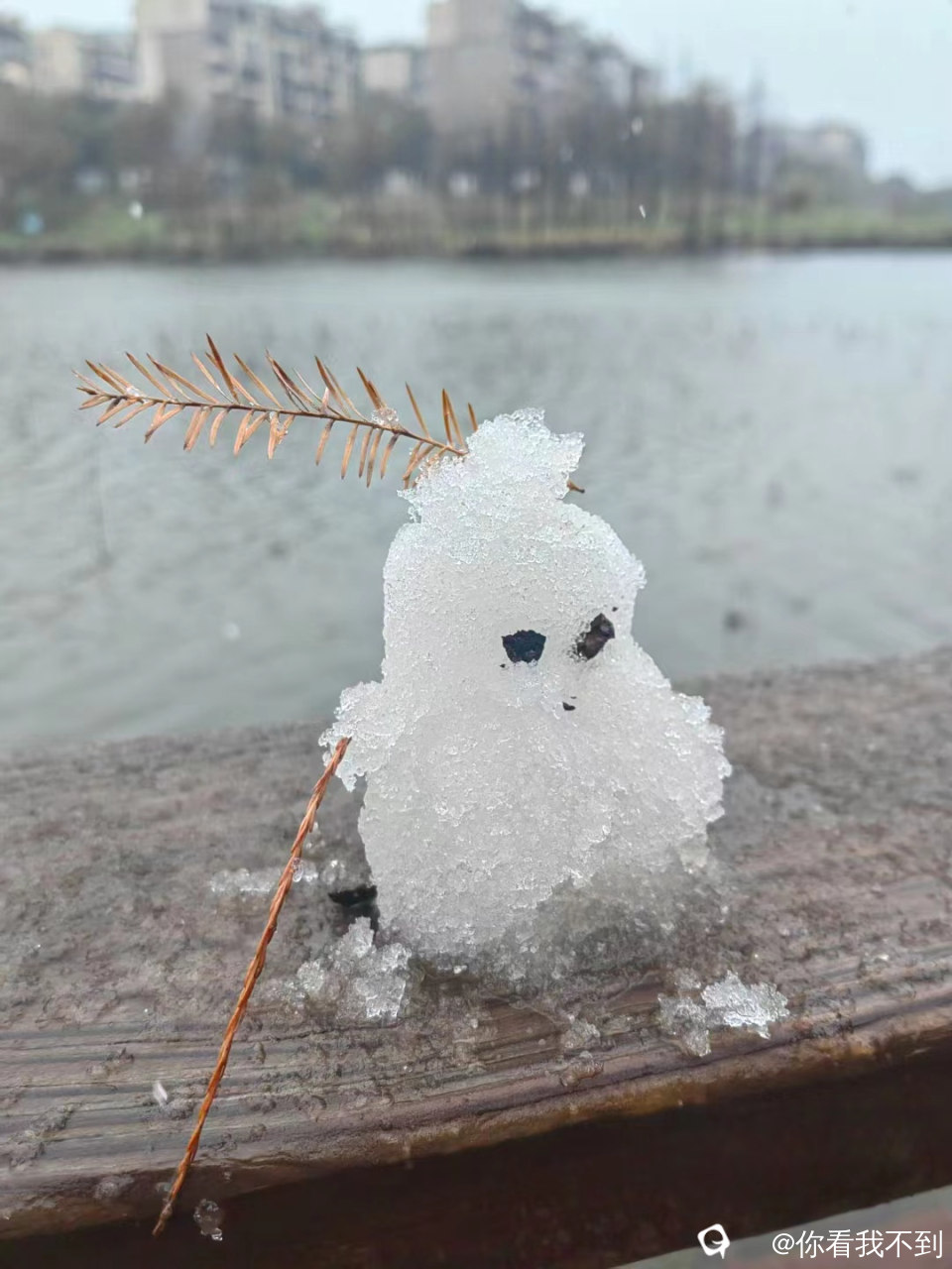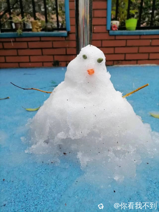 虽然雪量没有北方的大,桂林人堆雪人的经验也没那么丰富(堆出来的雪人没有几个成圆球的),但和北方相比,桂林的雪是伴着花和绿叶一起下的,这也给堆雪人带来了丰富的材料,让雪人更加丰富多彩。
