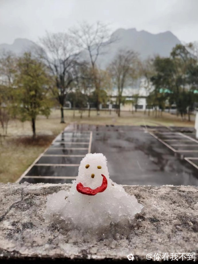 桂林市区迎来了久违的雪,就算在北方堆雪人是下雪时必不可少的项目,何况是在十几年没在市区见过雪的桂林人。