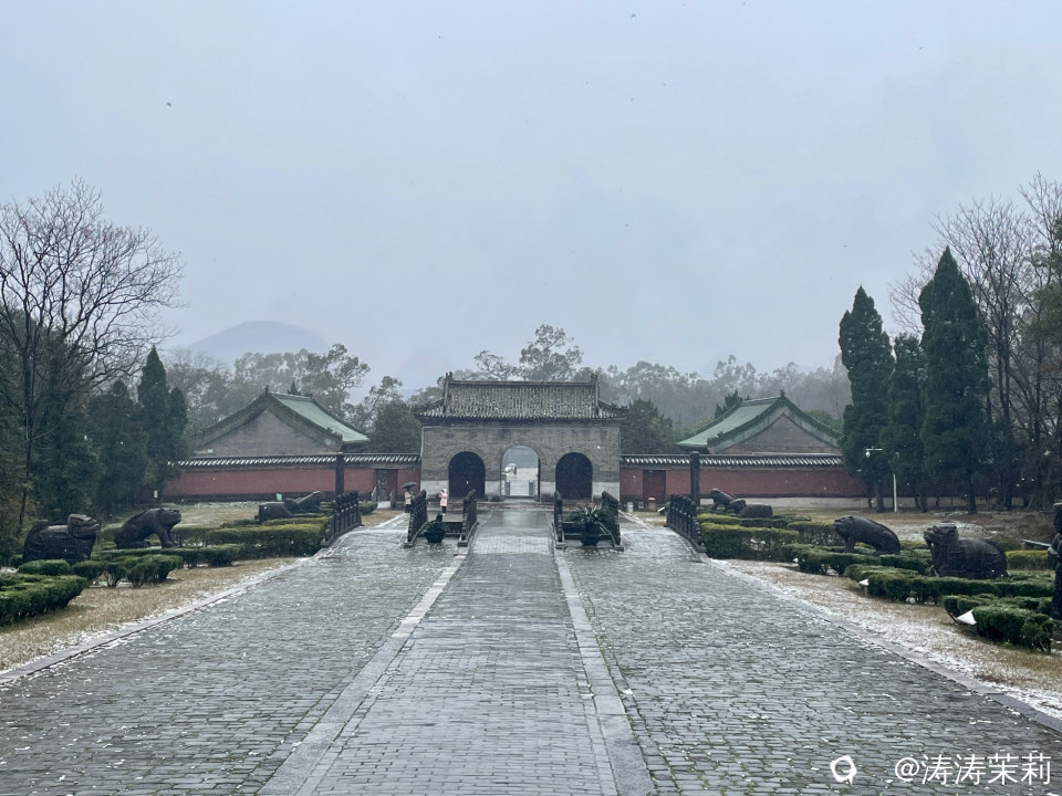 雪中的靖江王陵,别有一番景致,仿佛雪中故宫博物院的感觉,有穿越到宫斗剧场景的即视感,也有历经几百年沧桑与它相遇凝视的交流的感觉!图片来自靖江王陵工作人员小姐姐,她一定是热爱生活的人!