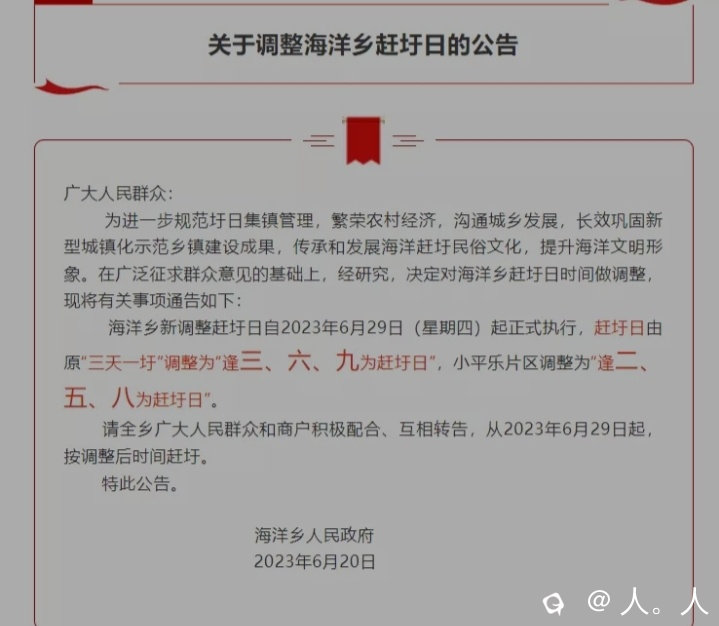 海洋和小平乐的圩日子现在也不再是三天一圩了,有官方公告。
