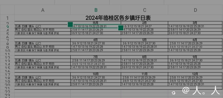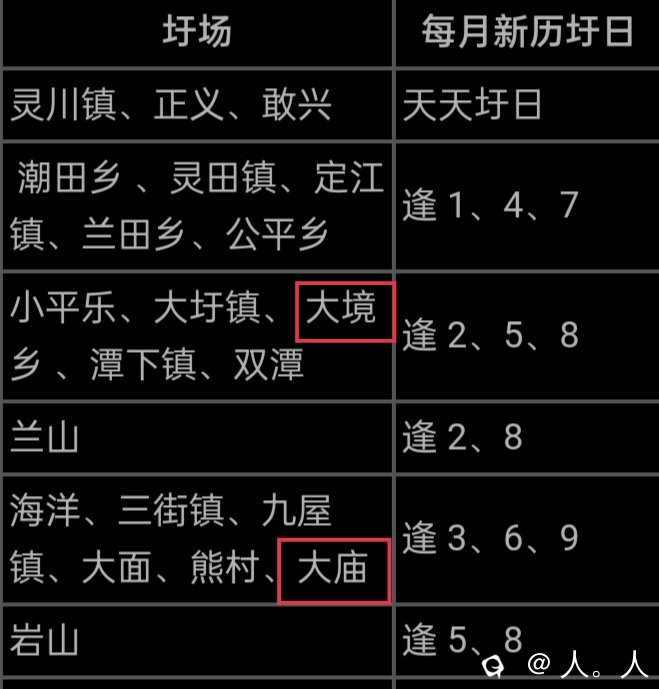 我看了不少灵川圩日图表,都是这样写的,但还是发现有几处错误,大境的圩日子我记得是三六九,大庙是一四七。