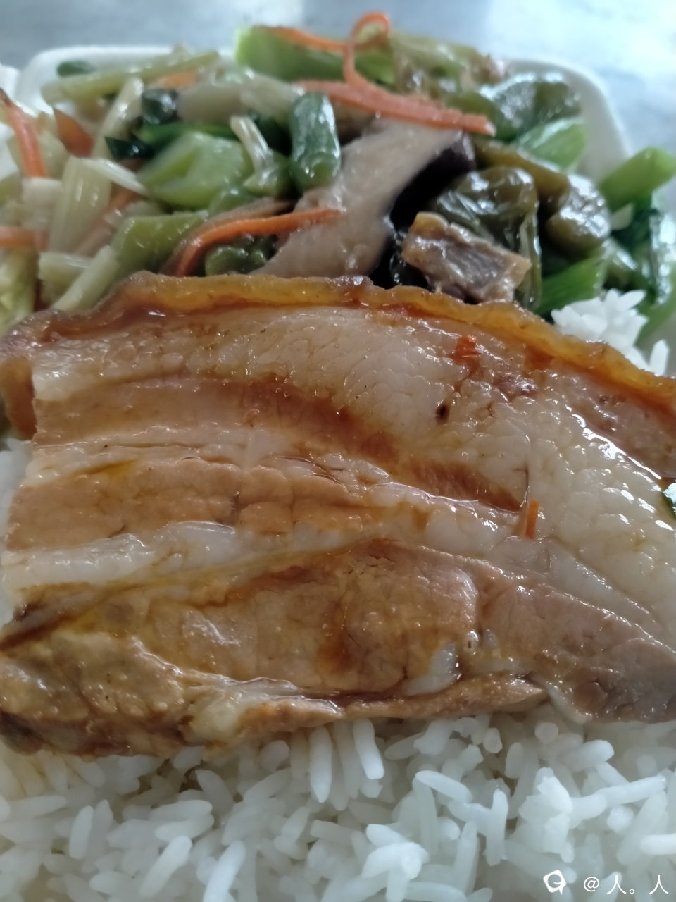 九屋圩上的土快餐,10块钱一份,饭菜品种不多,老板娘挑了一块瘦一点的给我。