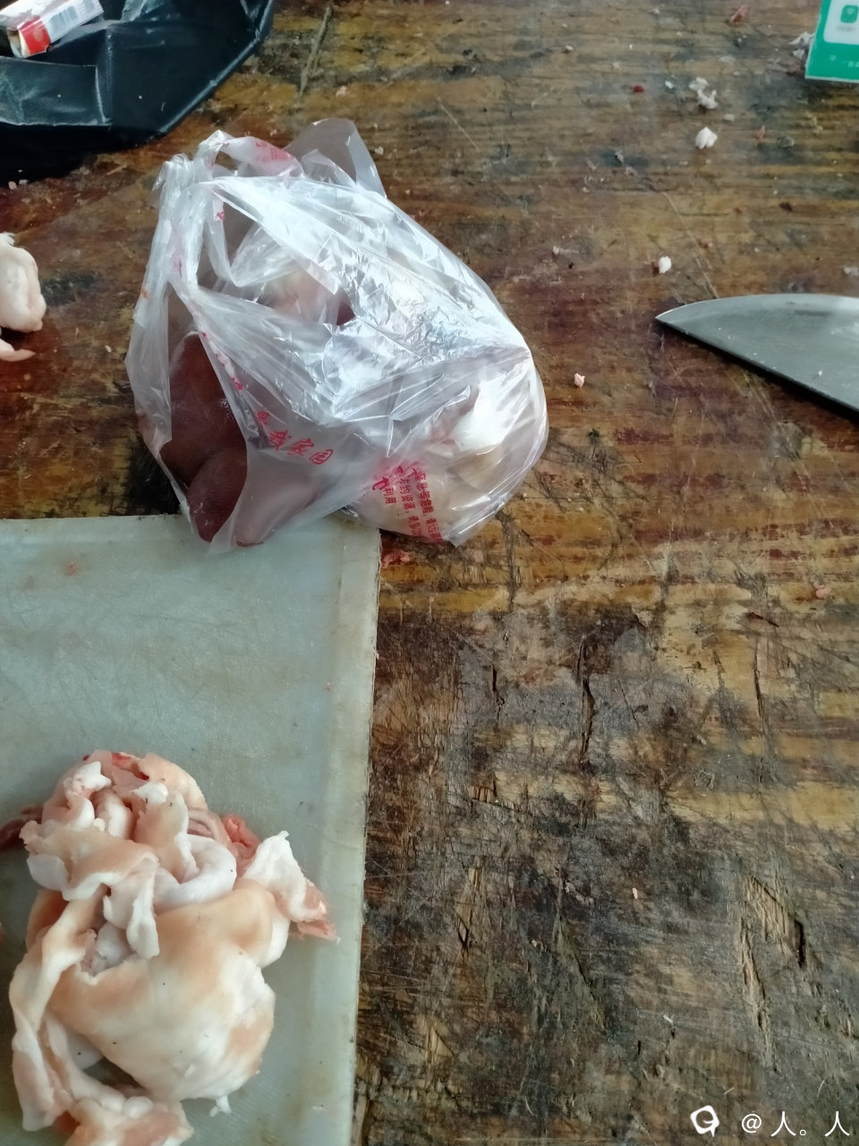 猪脚12块一斤,买了半只28块钱。老板讲把剩下那块猪肝一起给我,凑个整数。