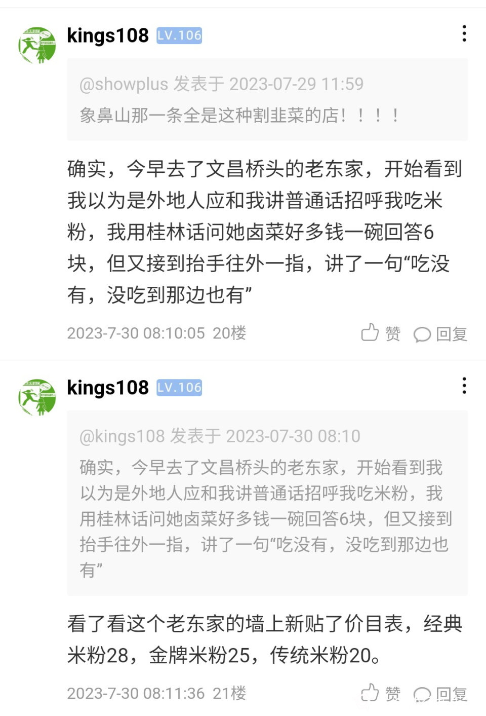 说真的,5块钱的米粉价格是整个桂林人民那么多年共同“争取”“整”下来并维持到今天的。一个666就说什么价格什么价格的不公平的有如何?你有什么资格说?你根本不知道为什么才卖5块钱!换做是我在外地,你说方言,他给你免费吃,要我十几块钱一碗面,我都不会拍视频说我受到不公平待遇。整得卖个米粉还搞出那么大的社会影响。这种真是扭曲了现在价值观,你一个00 的整得我们70 80 的做事小心翼翼的动不动就因为几块钱危害社会安定了!以后解决这种哈LUAN人的问题的就是直接定价50-100一碗,想吃肉吃菜随便加吃到饱到撑,豪华版!但是我们桂林人凭身份证1折优惠正常量就行!我们不眼红不搞特殊化让他们吃饱吃好666