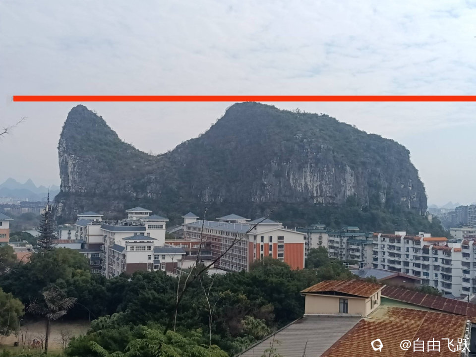 这是桂林市区一座著名的山,有两个山头,你觉得哪边更高点?