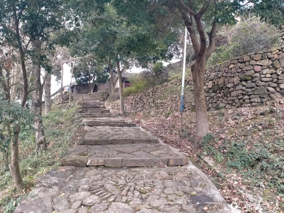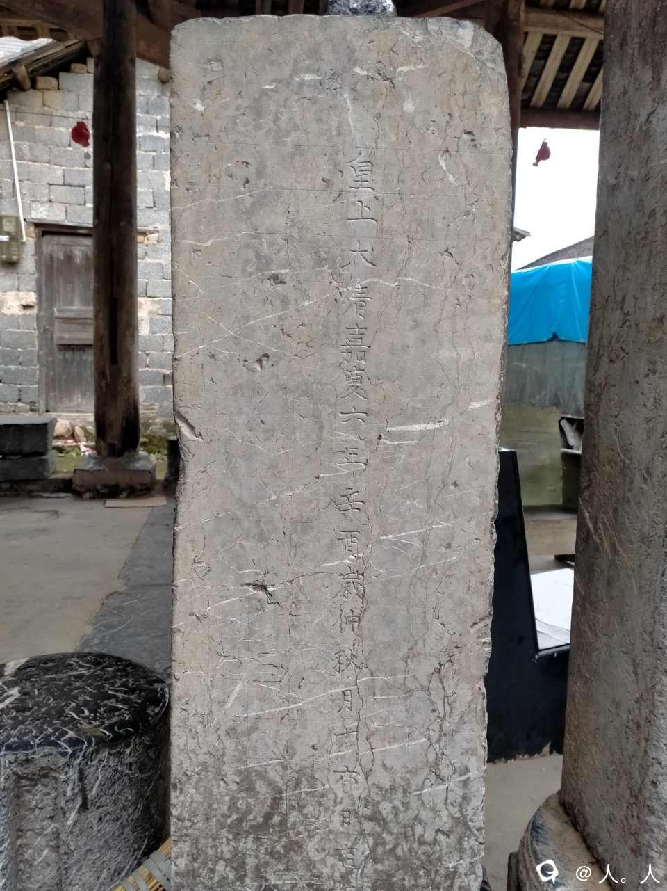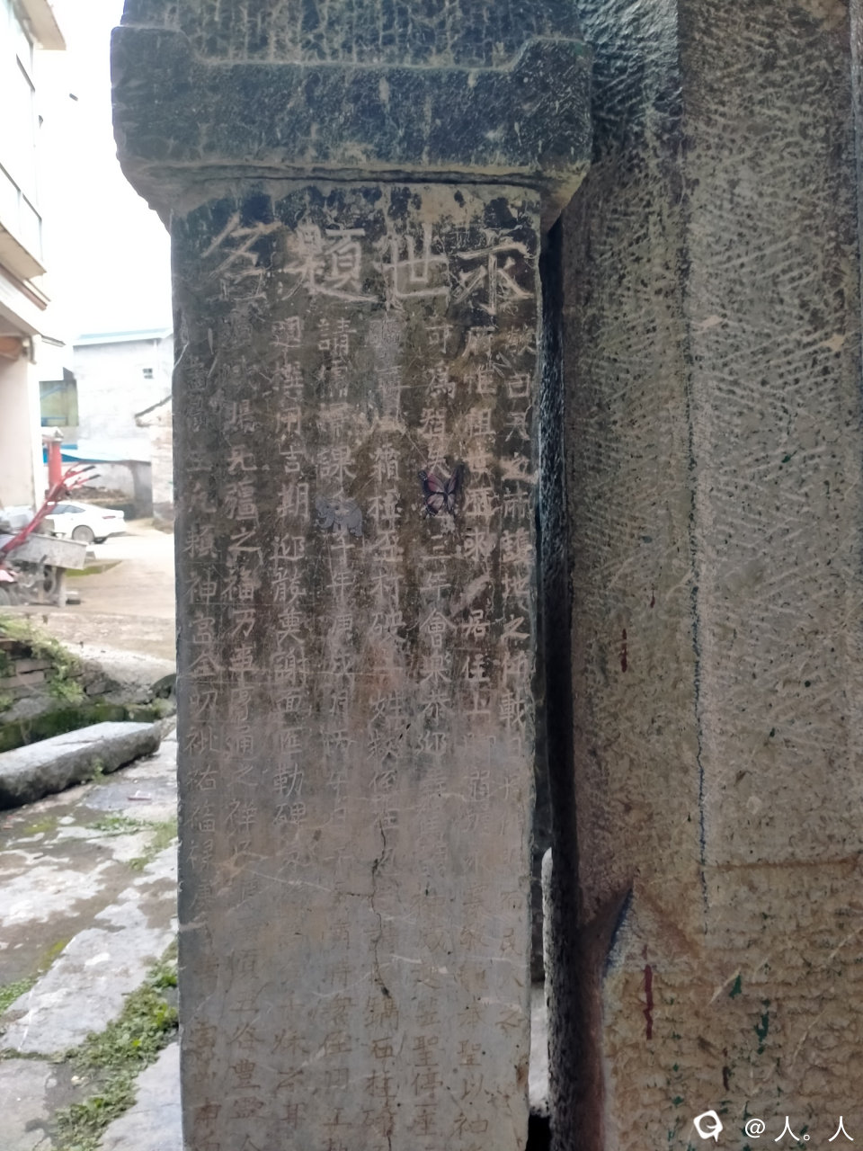 狮塘第二座凉亭,只剩下几根残缺的石柱构件,石刻的对联还清晰。宽大的石板路说明曾经繁华,尤其是在这个山沟沟里头很难得。