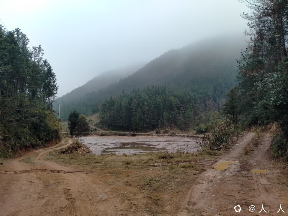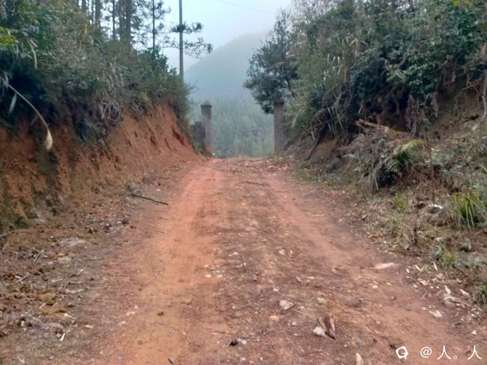 这里和湖南交界,是以前的交通要道,我尝试着走了一小段。古道已改成了机耕路,山上无人,远看山坳的那个柱子还以为是个凉亭呢,哈哈。那个水塘估计就是牛眼塘吧,下次有机会从湖南那边走走看。