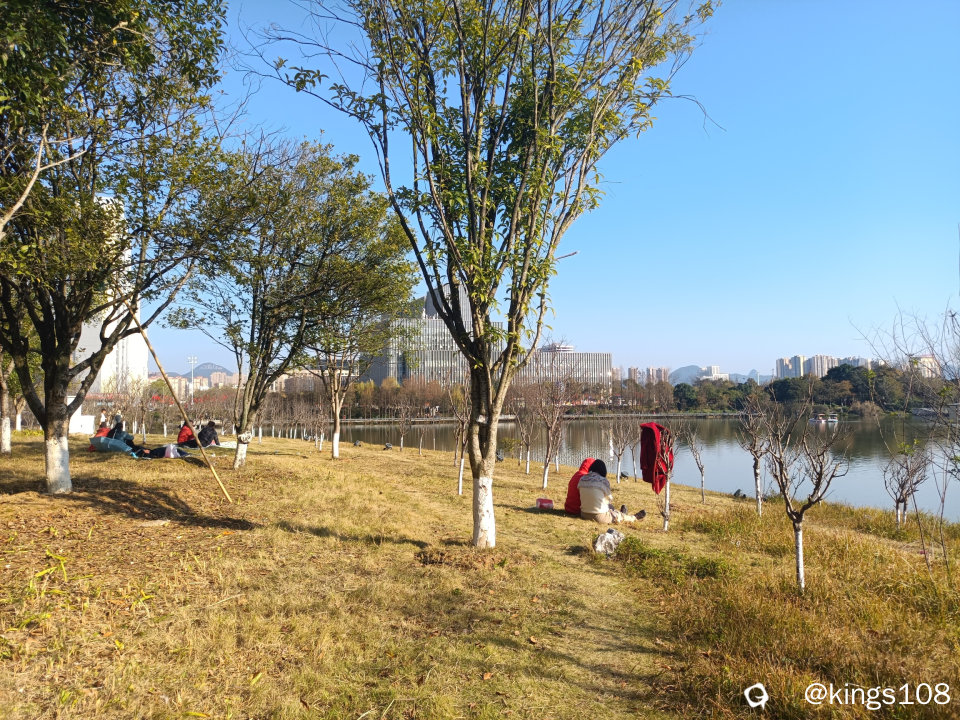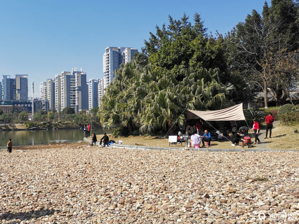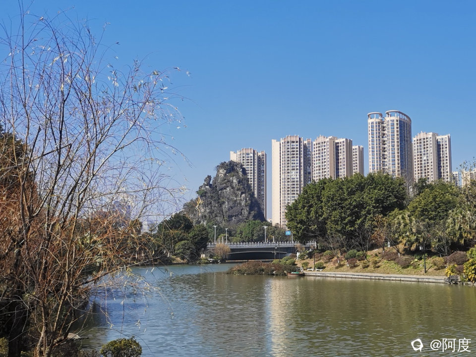 这段时间桂林一直低温阴雨,寒风呼啸,虽然今天升温了,天气预告气温达到20度,但室内温度也只有8度,坐着不动仍觉得寒气浸入骨髓,实在受不了,决定到临桂山水公园逛逛,第一次来,发现这里人山人海,停车场停满了车,公园内太阳热辣辣地照在每个人身上,大家都脱掉了寒衣,甚至有打赤膊的,可是没走几步,就快出汗了,只能慢慢地摇,许多人到草地坐卧休息,享受这火热的阳光之浴。室内室外、白天夜晚真的是冰火两重天,中午和晚上的温差达到近20度。