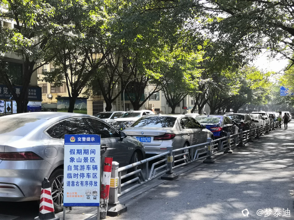 终于看到了交警提示牌:“假期期间,象山景区自驾游车辆临时停车区,请靠右有序停放。”这个位置是宁远桥往南,过了安新北区公交站后的往南路段。极大的方便了来桂林自驾游的车辆停放,还能保证节日期间的车辆通行,真是一项方便游客停车的新创意!