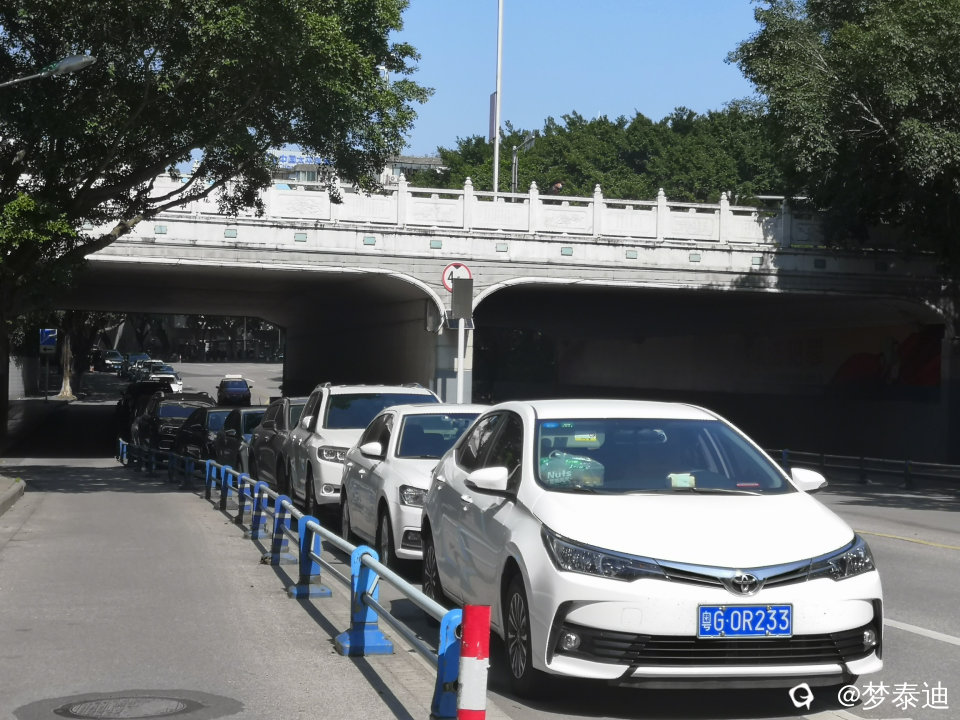 昨天初二在雉山桥下匝道忽然看见向南方向停满了一溜整齐的外地车,望前看,停车一直向加油站南面出口,安新南区篮球训练场方向延伸。