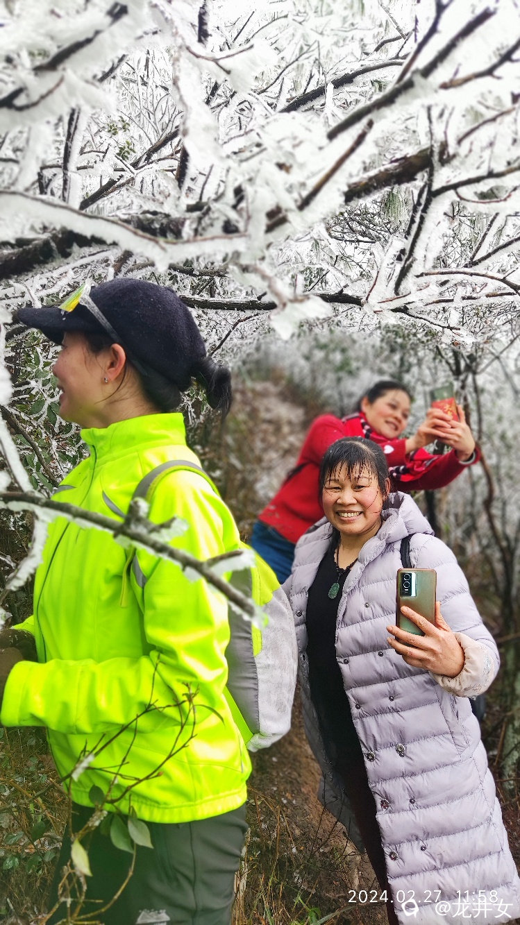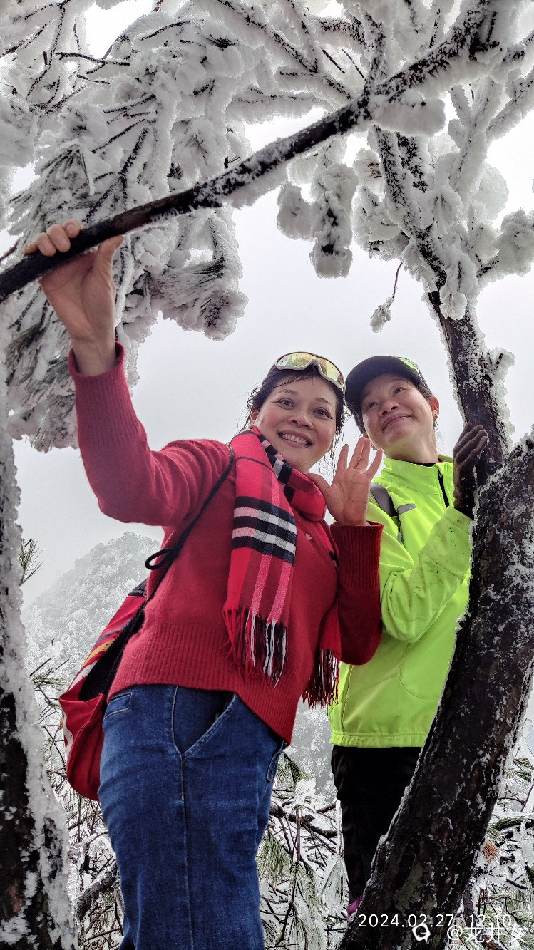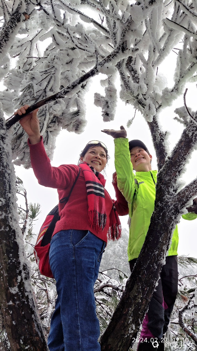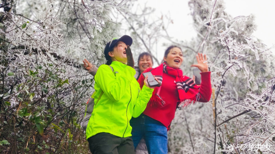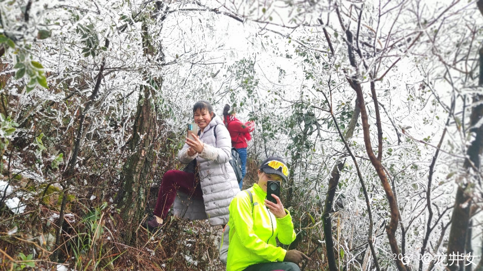 往上走,很快,就看到树上挂有冰雪了,开始嗨起来!