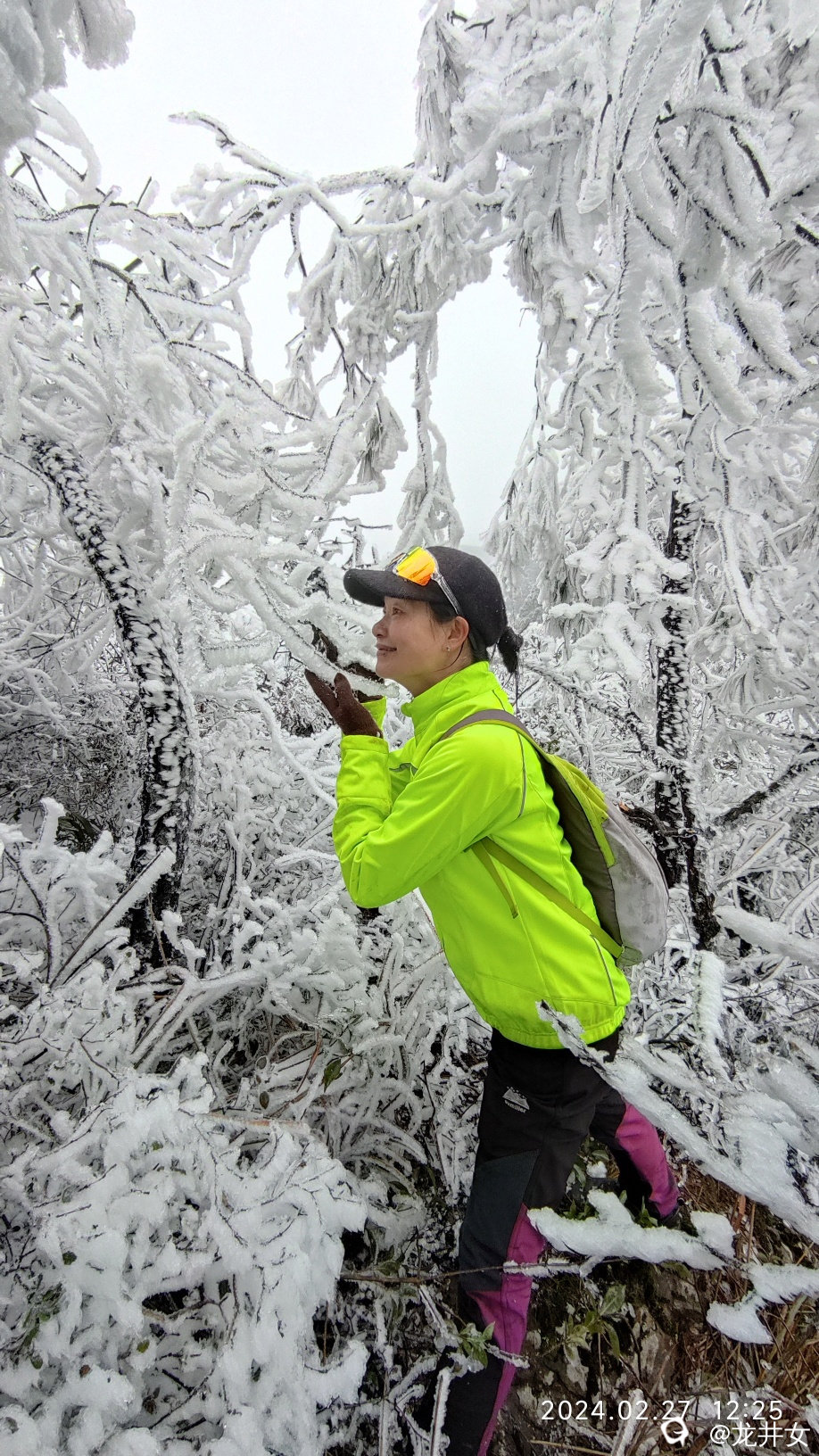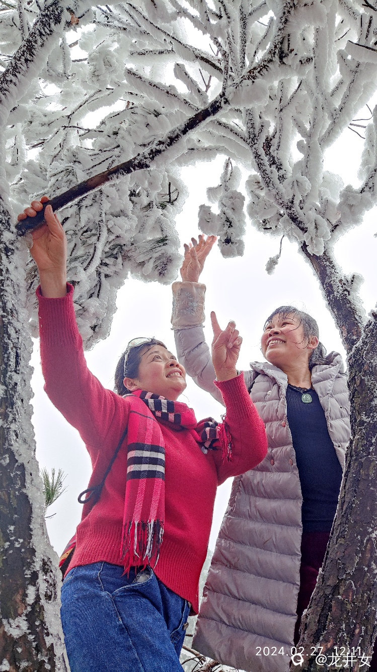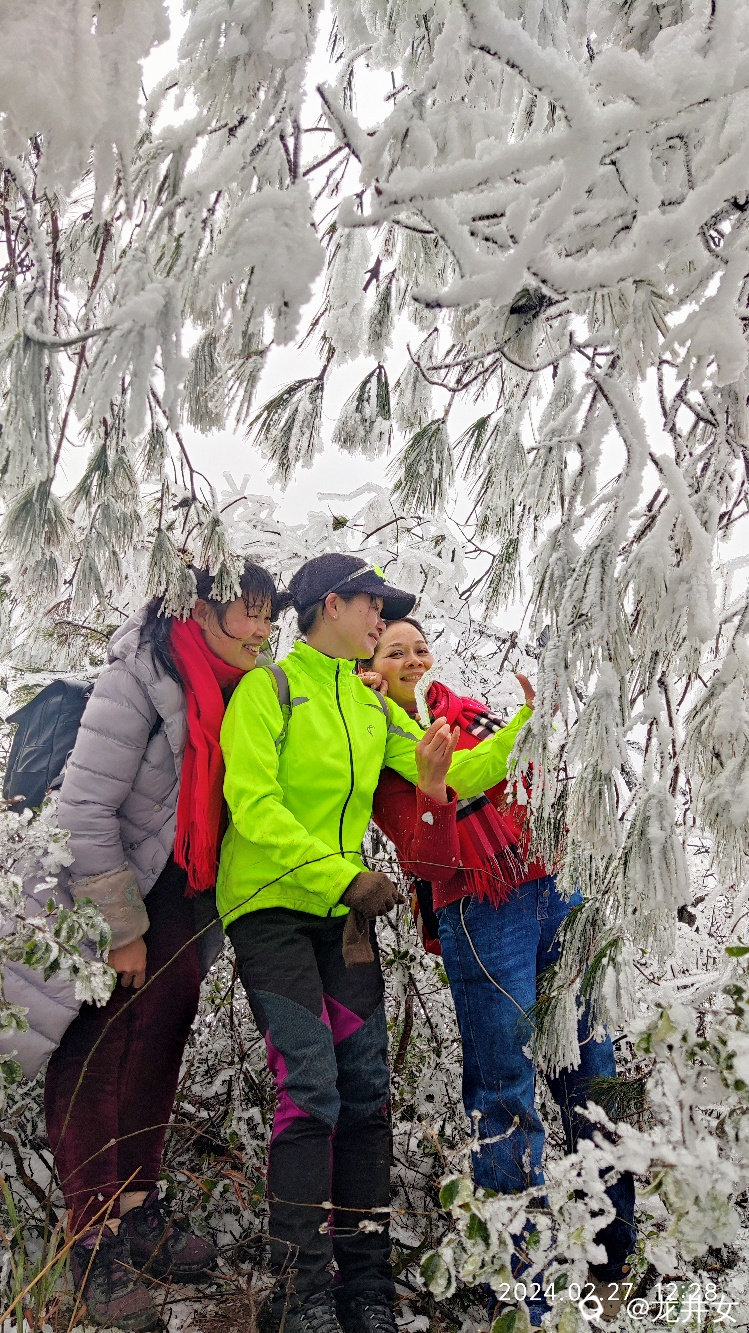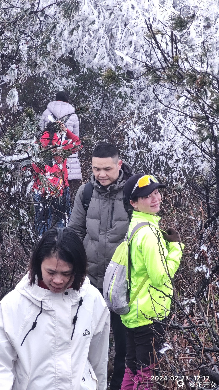往上走,很快,就看到树上挂有冰雪了,开始嗨起来!
