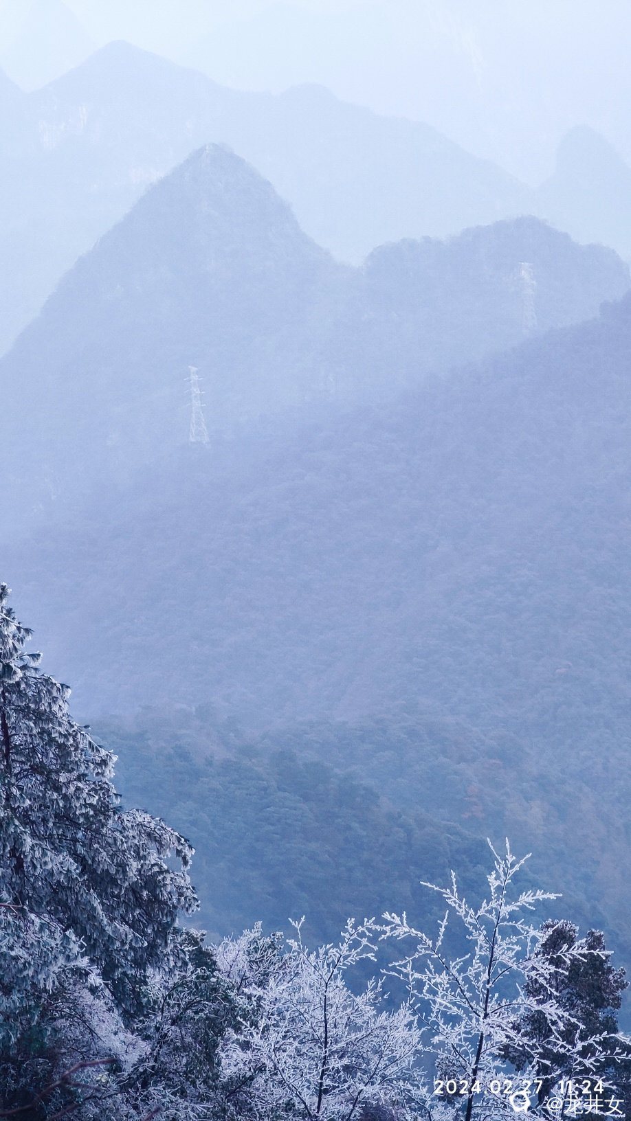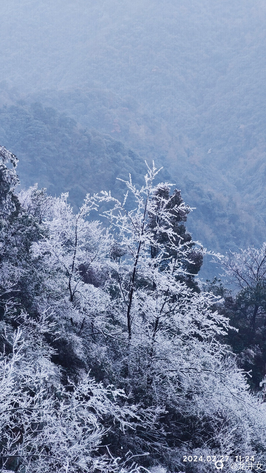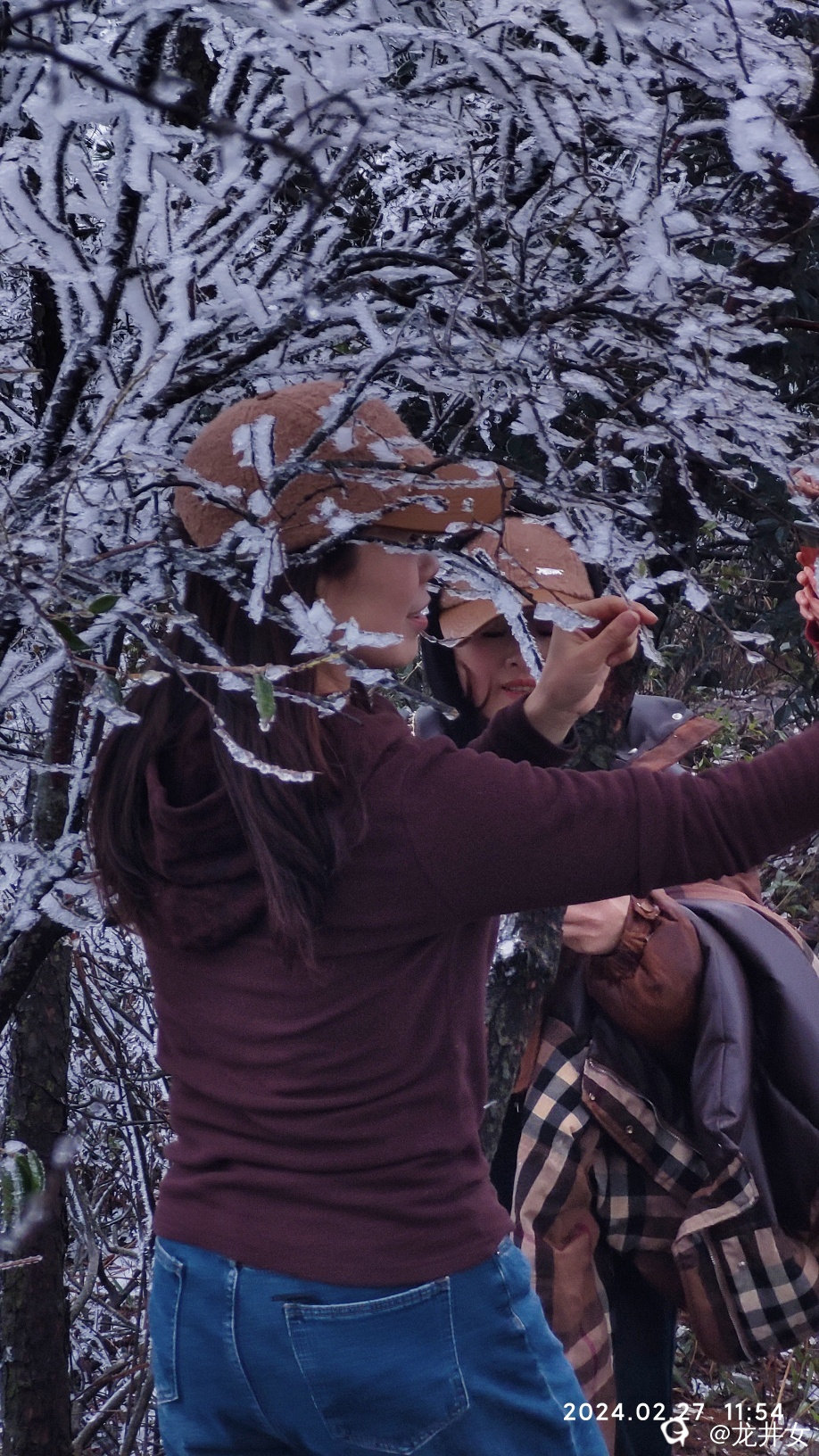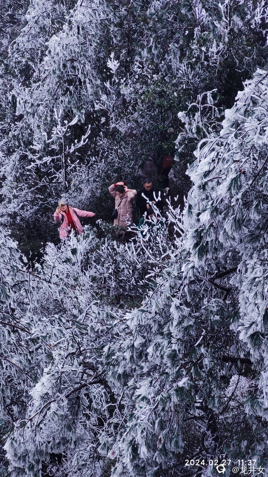 往上走,很快,就看到树上挂有冰雪了,开始嗨起来!