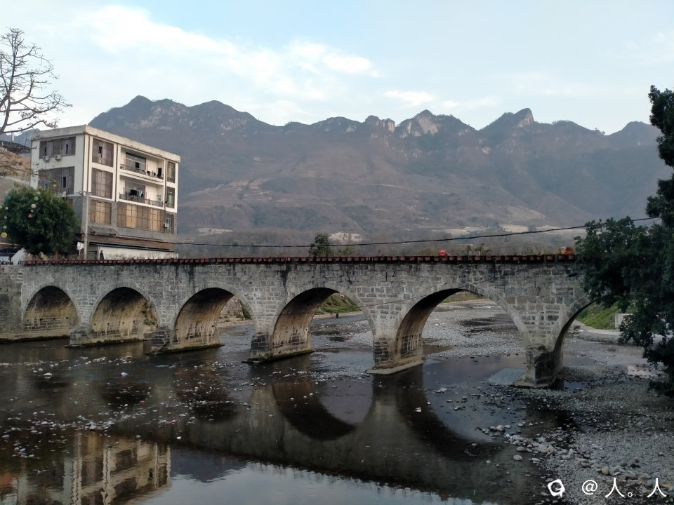 这是第一个点,罗甸县打铃桥。该桥建于1832年,长18米,高9米。