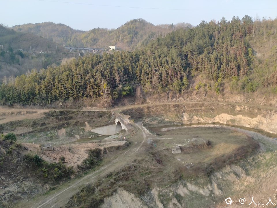 现在桥面塌陷了一小部分,已无人行走,在山上望下去孤零零的感觉。