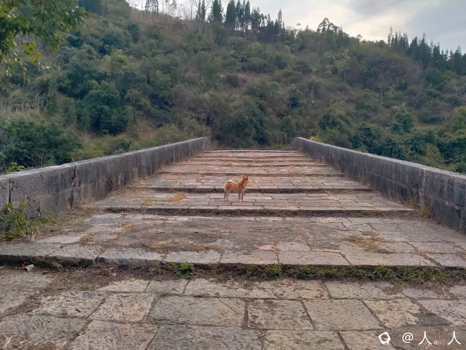 等我看完桥,上到半山,狗子才从桥的那端开始往回跑,四十秒钟追上了我。看了那么多的古桥,它也摸出点路数了,游玩时间把控得很好。