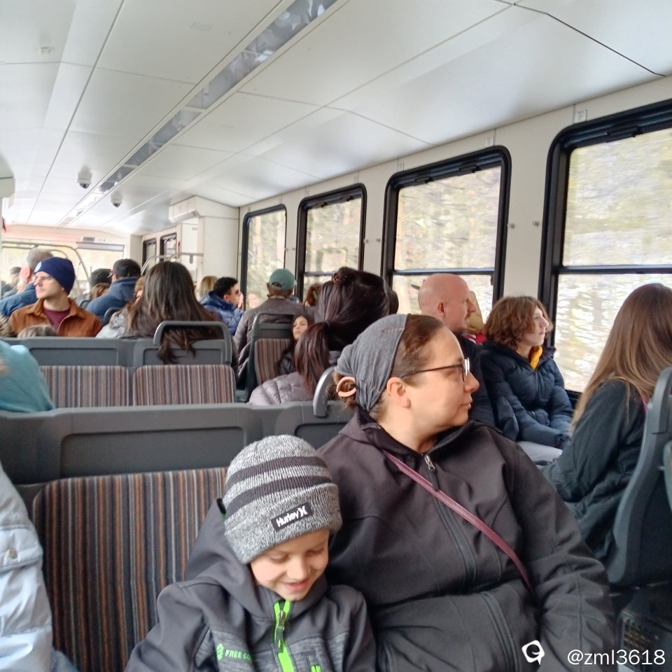 据资料:齿轨铁路是一种登山铁路,普通的铁路中间,另外铺设一条特别的齿轨,,,,可把列车拉上坡度达48度陡峭斜坡。咱坐在车厢里,没有感觉到车子的摇晃,车子平稳的,缓缓的向前行进,我们抢的票位置靠窗,为此多花了20美元,看车外风景特棒。
