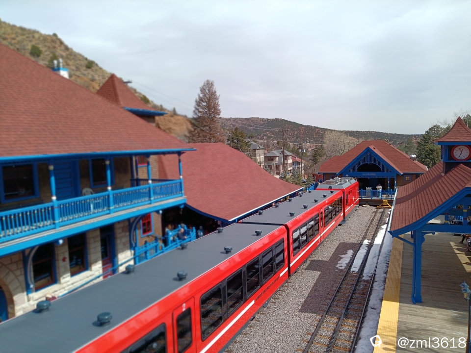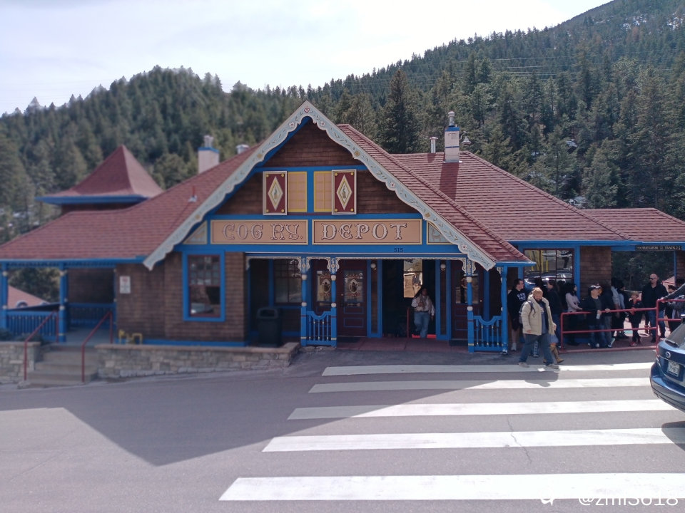 派克峰是美国第二高山峰,海拔4300米,这里有世界上海拔最高的齿轨铁路 ,咱就想搭乘这高山齿轨火车登派克峰。于是,俺女儿提前两天抢到了此火车票,搭早上最早的9点20的头班车。
