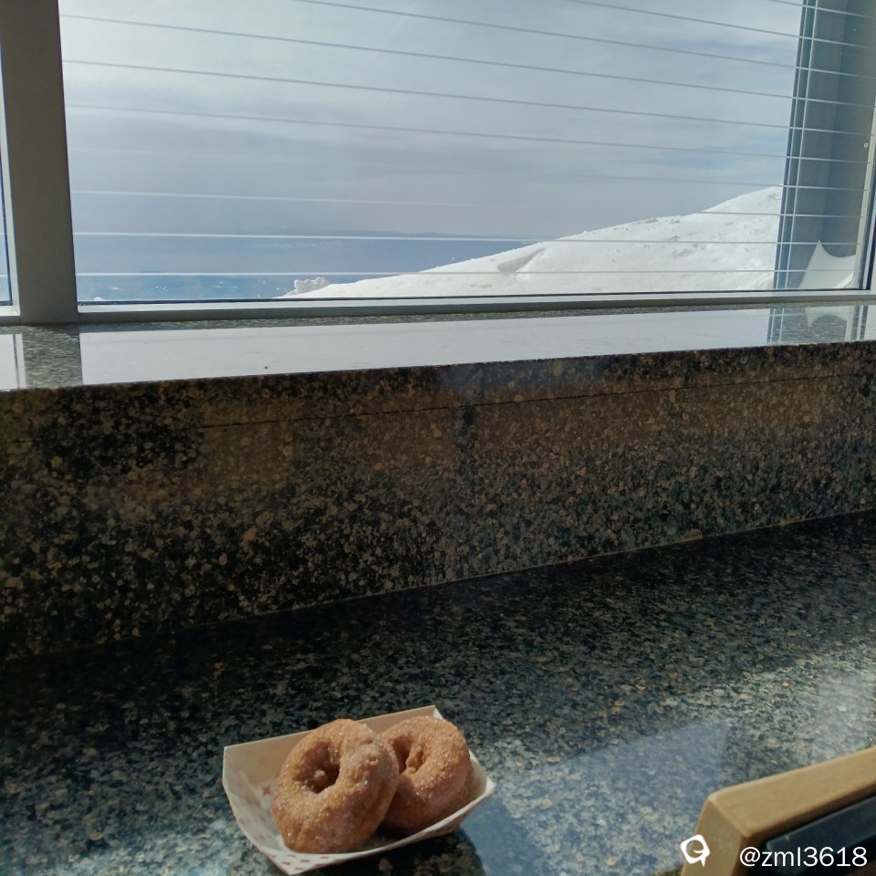 山顶上设有餐厅,厕所,纪念馆,及历史上登山的人物,山上的动物等等。女儿给我买了两个海拔最高的甜圈圈,开心。