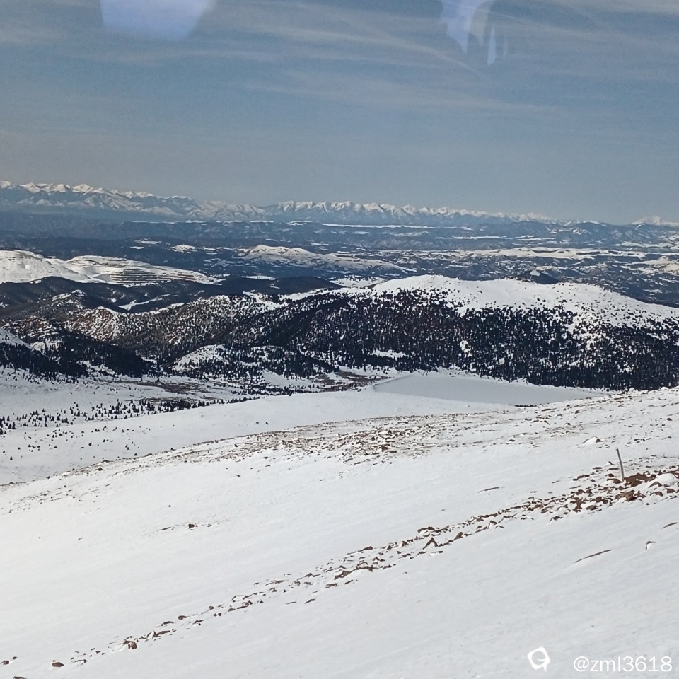 登到雪线时,已没有树,一眼望去洛基山脉连绵起伏,白雪皑皑,望不到尽头。