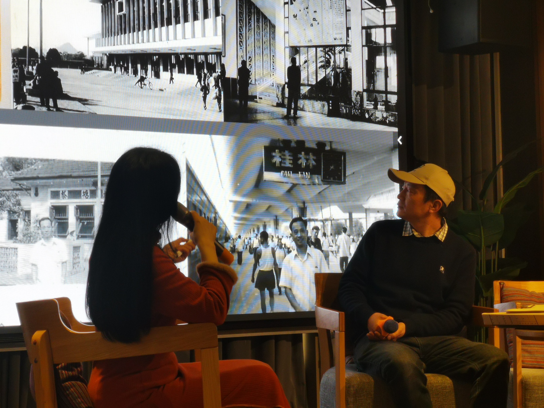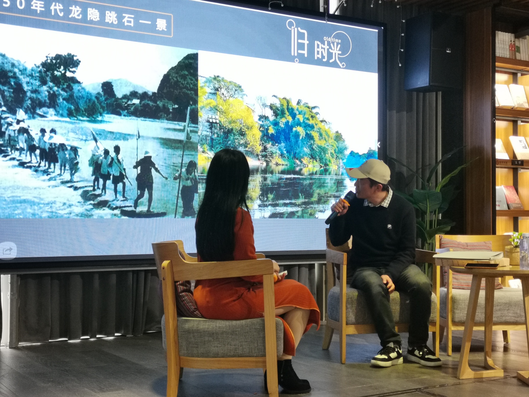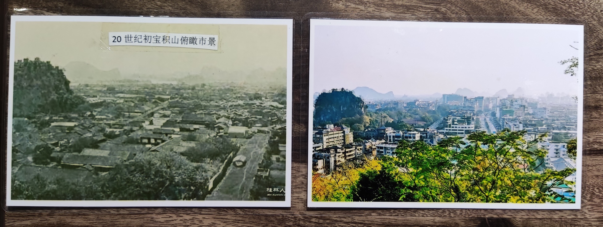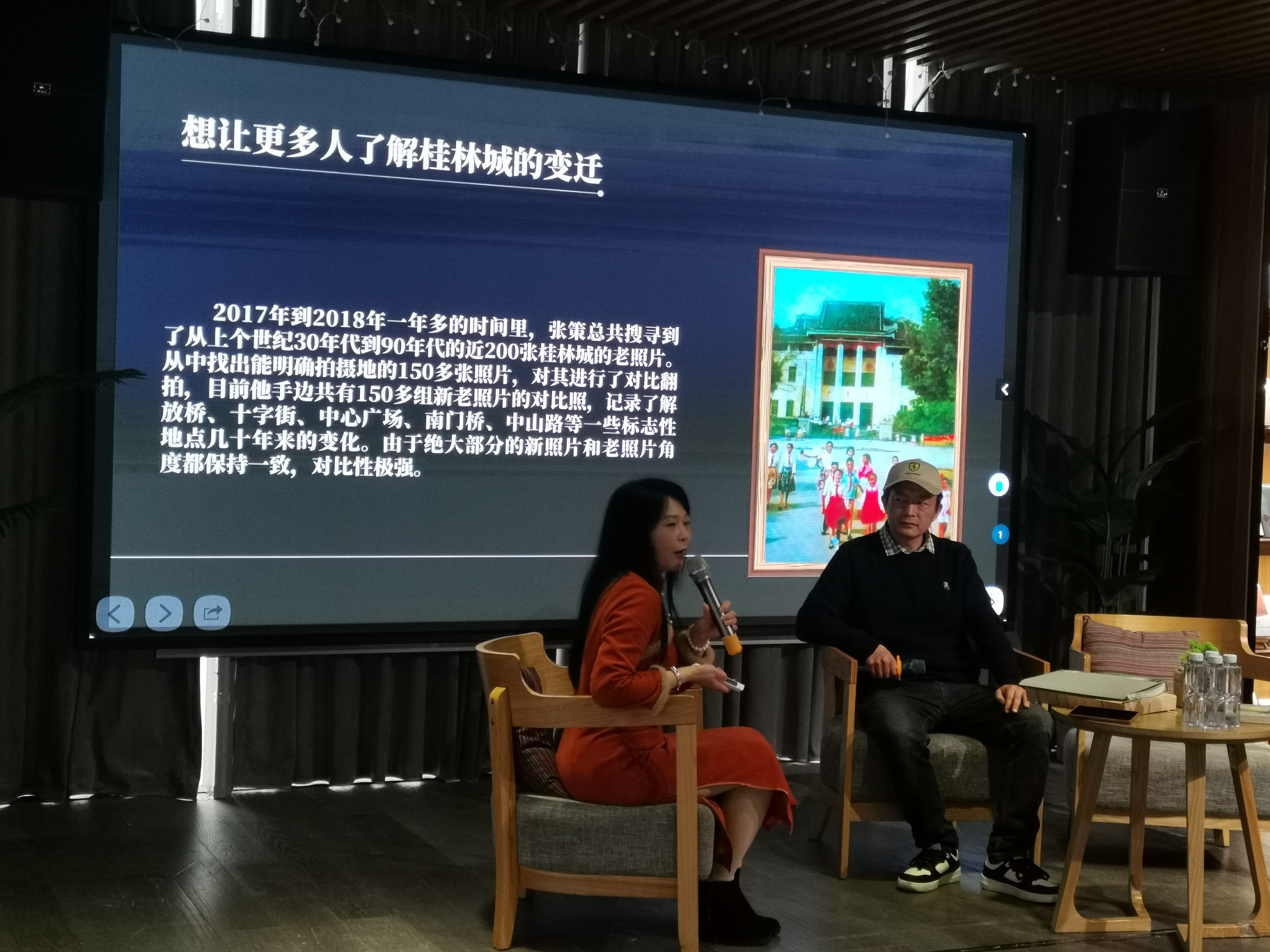 在主持人采访中说道,他当时为了拍一张叠彩山山下风貌对比照时,他几乎爬遍了整座叠彩山的每一个角角落落,最后终于在一座位于半山腰的亭子那里找到当时老照片的拍摄角度。