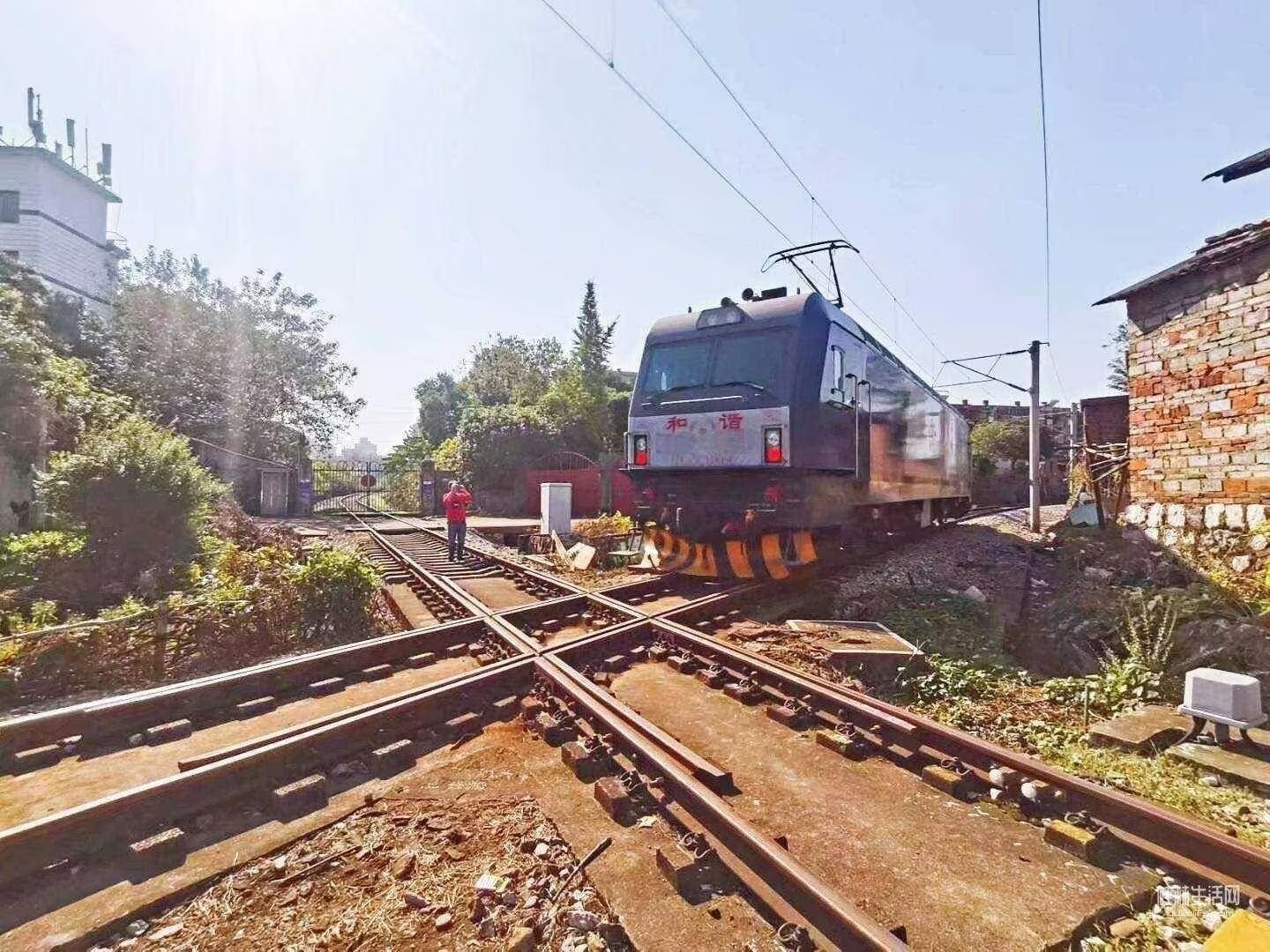 注意看上面图一中的火车行驶在一个特殊的铁轨上,那是一个十字交叉的铁轨,这样的铁轨平时很少见,作为一名铁路职工子弟,在我的记忆中这样的铁轨也是第一次见,还是在他拍的图片中看到的。既然对火车和铁轨这么情有独钟,肯定从小生活在铁路旁或者以前在铁路工作过,果不其然,随着接触之后了解到,他还真的跟铁路有不解之缘。