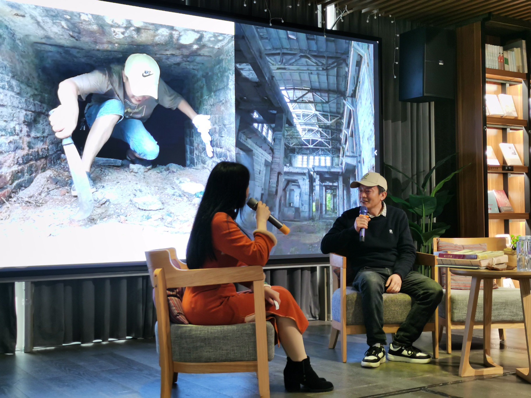 展会中这张照片感动我,手里拿着一把砍柴刀,弯着腰,几乎匍匐前进,从一个洞口爬出来,主持人采访时他说道,为了拍一个烟囱,想进去探个究竟,再就是老厂很多房子都荒芜了,洞口长满了杂草和荆棘,也许里面还有老鼠和蛇呢,但是他为了拍到一张满意的照片,他去努力了,他觉得很值!
