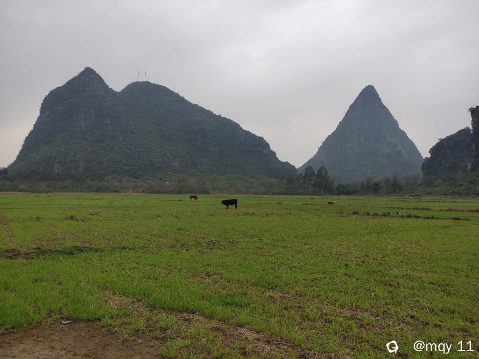 当“风吹过草低现牛羊”的诗句想起,耳朵陆陆续续听到一声声“娃娃声”,从山顶传来,也许是小羊羔,已经上山寻食。而田园远处的牛老哥,也不忘转过头来,跟我打声招呼,想必告诉我“此地不宜久留”。