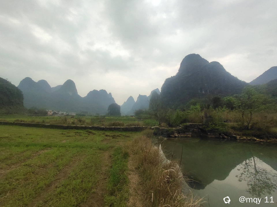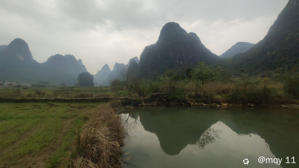 一种莫名其妙的想法,油然而生,此地距离人人皆知的临桂状元桥不足两公里,从状元桥看此地,乃山水青山之景,而我站在白豆村龙头桥上看向白豆村方向。