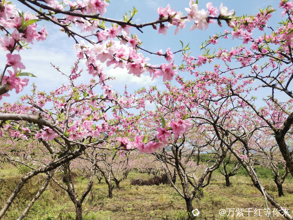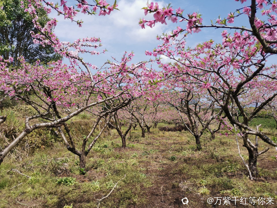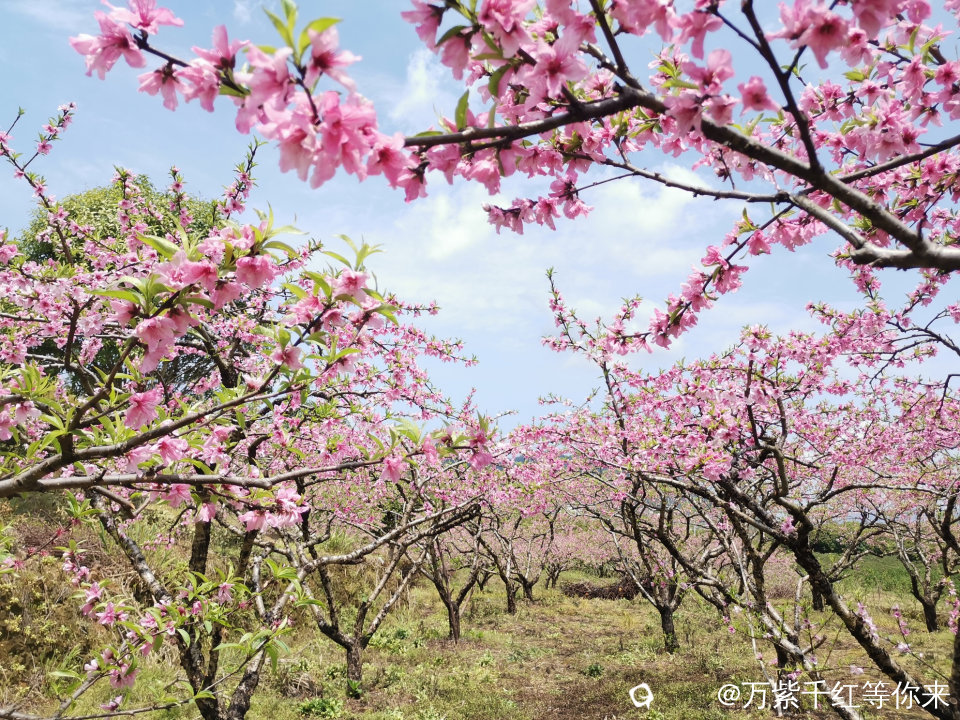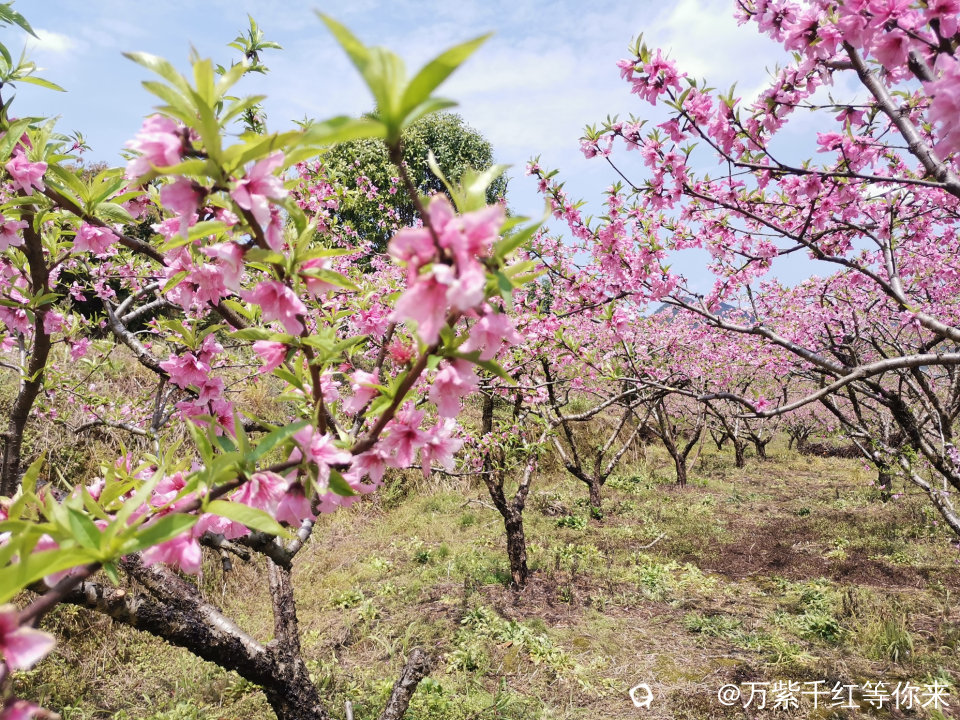 放眼望去,田野里桃树成林,红的粉的缀满枝头;在青翠嫩绿的绿叶映衬下,更显得鲜艳娇美。时不时吸引着蜜蜂,飞来飞去采蜜忙;还有那蝴蝶也翩翩起舞,围着花朵跳起了优美的舞蹈。