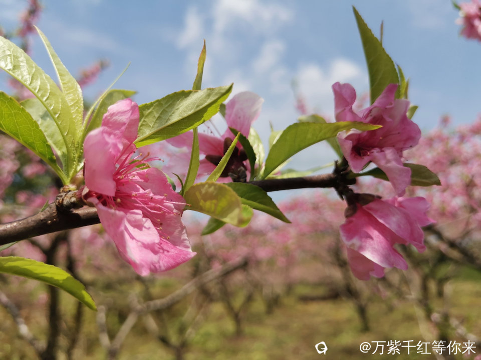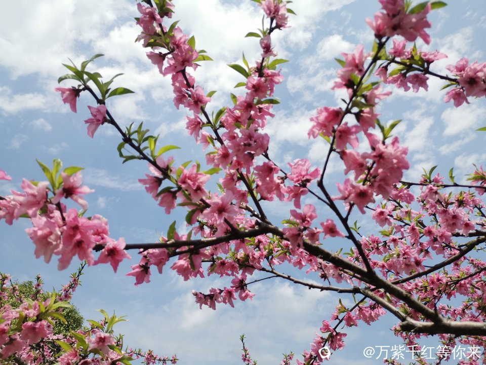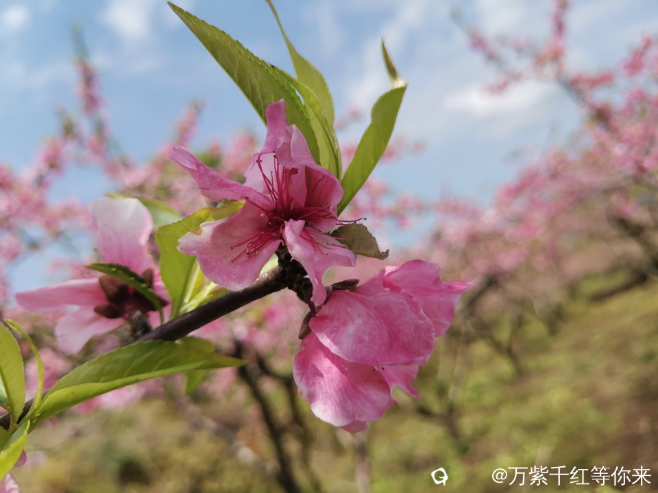 桃花的花季还蛮长的,开到绿叶张开了对对小翅膀。照片拍得真美,看得如亲临其境,粉粉的桃花装扮出一个粉柔的仙境。