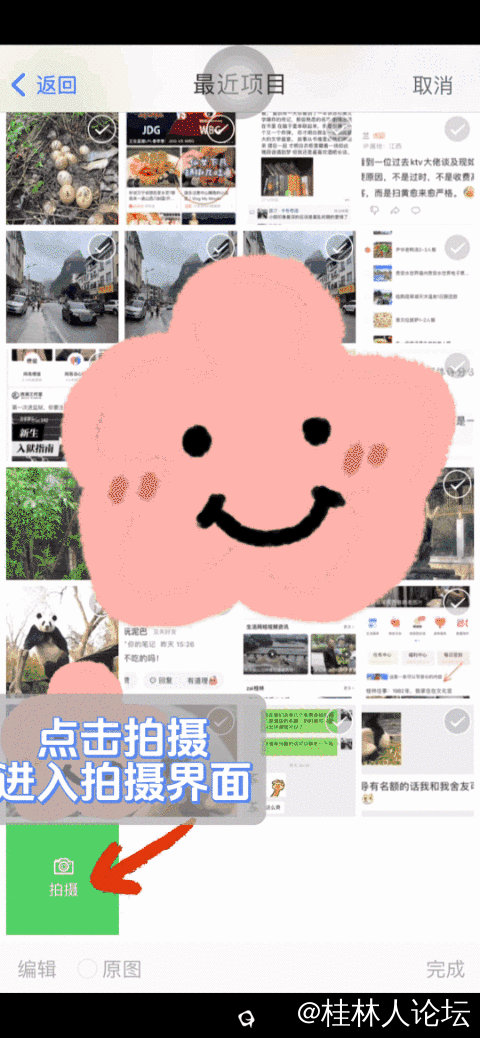 NO.4如何让APP拍摄更有创意 在上传图片界面中选择“拍摄”图标,即可进入APP拍摄界面,新增翻转摄像头、滤镜、美颜等功能。