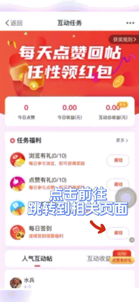 首页点击“任务中心中”,点击“前往”即可跳转到相关页面完成任务。