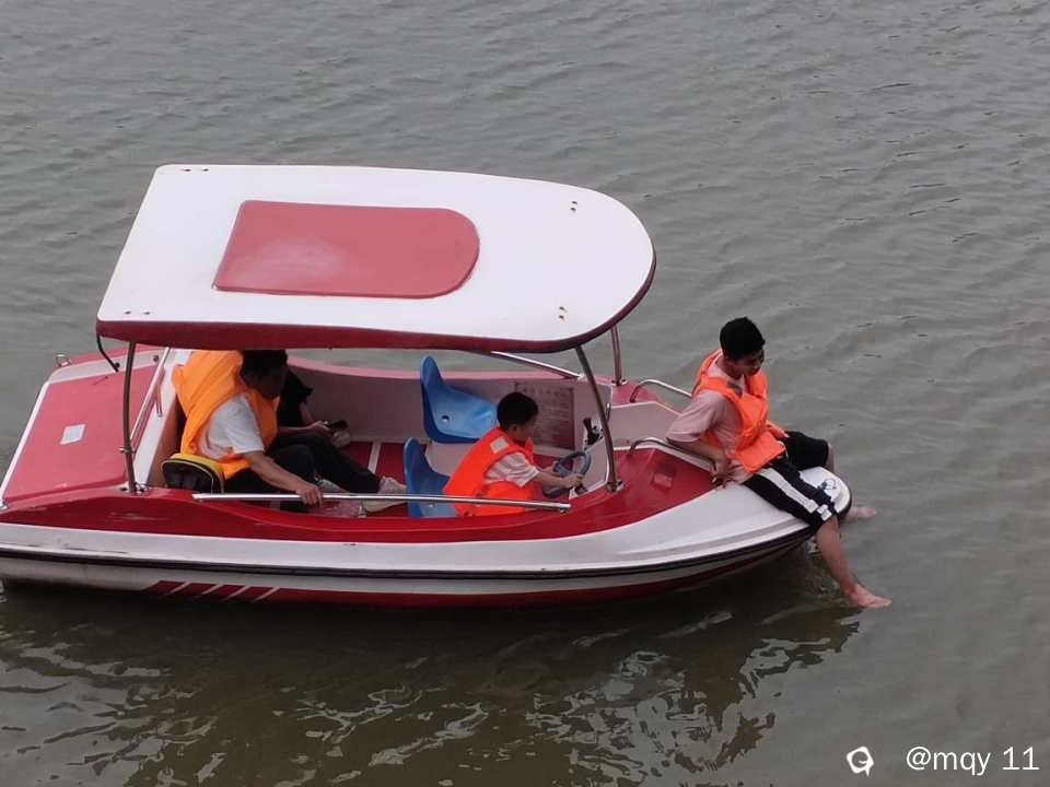 欢声笑语之间,年轻小伙,一家几口,坐上游船,游戏在山水公园水系之间,忘记了烦恼,忘记了危险,有如泰坦尼克号的张开双手,有感受桂林春日清凉的水。
