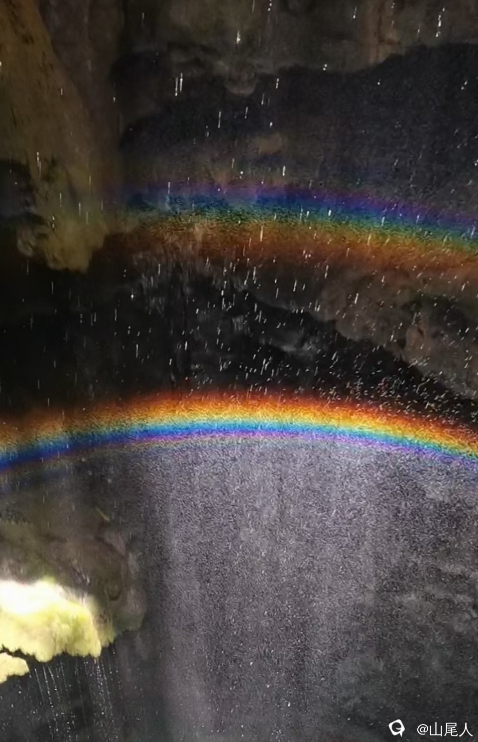 珠玉奔腾映彩虹。