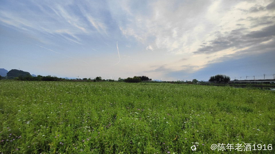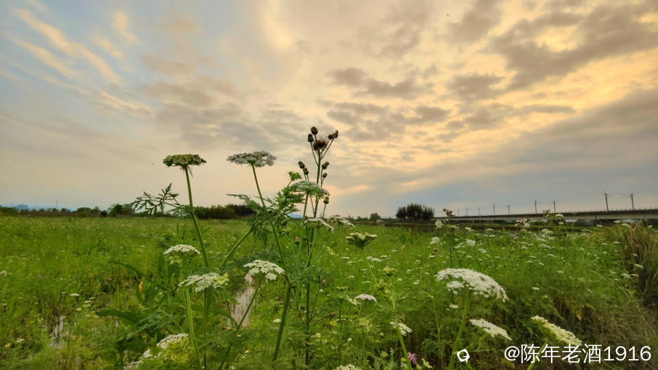 四塘鱼陂畲村,前阵子因田间的紫云英而“走红”网络,而今“紫色的诱惑”过后,接踵而来的是田间和田埂长满的白色小野花(蛇床子),尽管不起眼,但也不失为踏春打卡好去处。阳光明媚且无风的下午,旁边的大水塘水平如镜,群山倒影有如天空之境。旁边的动车线动车飞驰,运气好还可以遇见霞光中的动车。你还在等什么,纸约上好友赶紧走起......