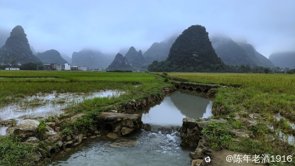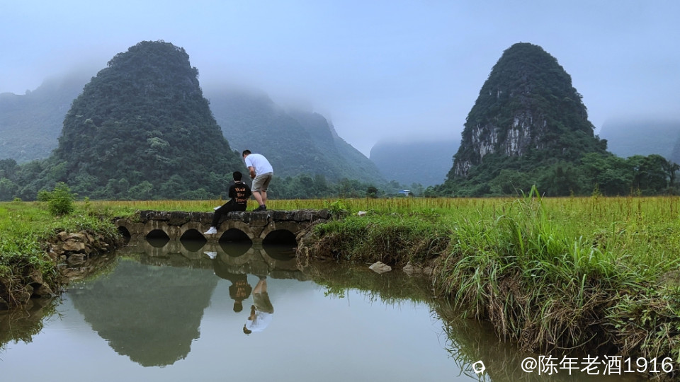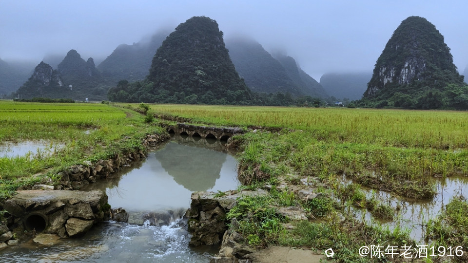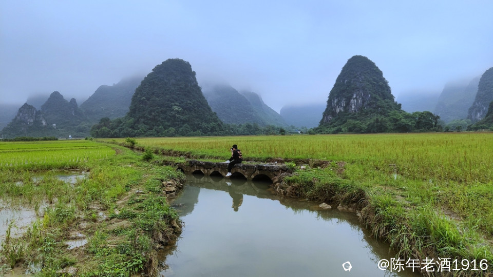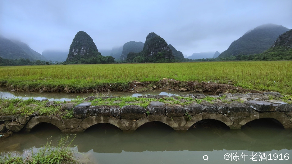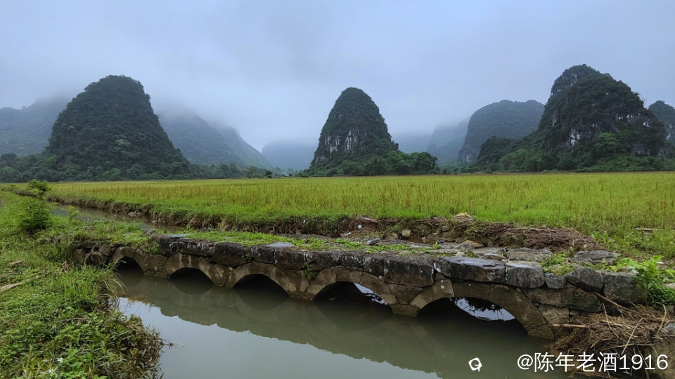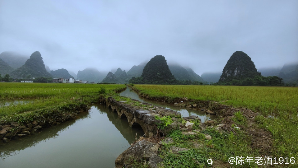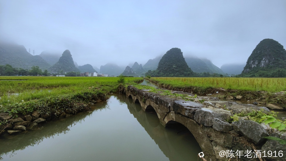 雨天来到田心村,群山上空飘着雨雾,给山水田园增加了灵气,远处的状元桥人多车多,只能停留在田垌间的小五孔石桥,小而精致且相对完整,索性以其为前景,群山为背景换着角度开拍起来。
