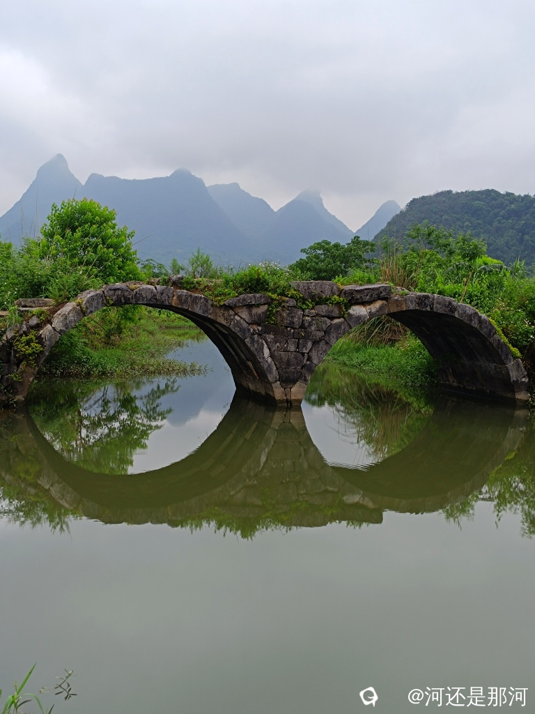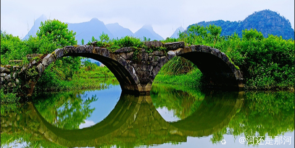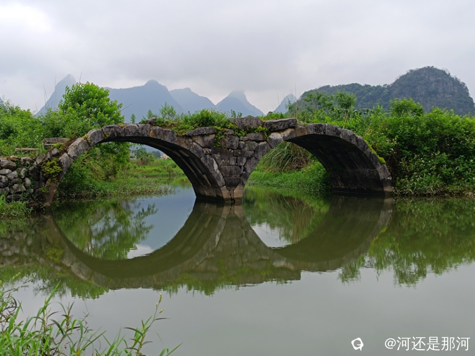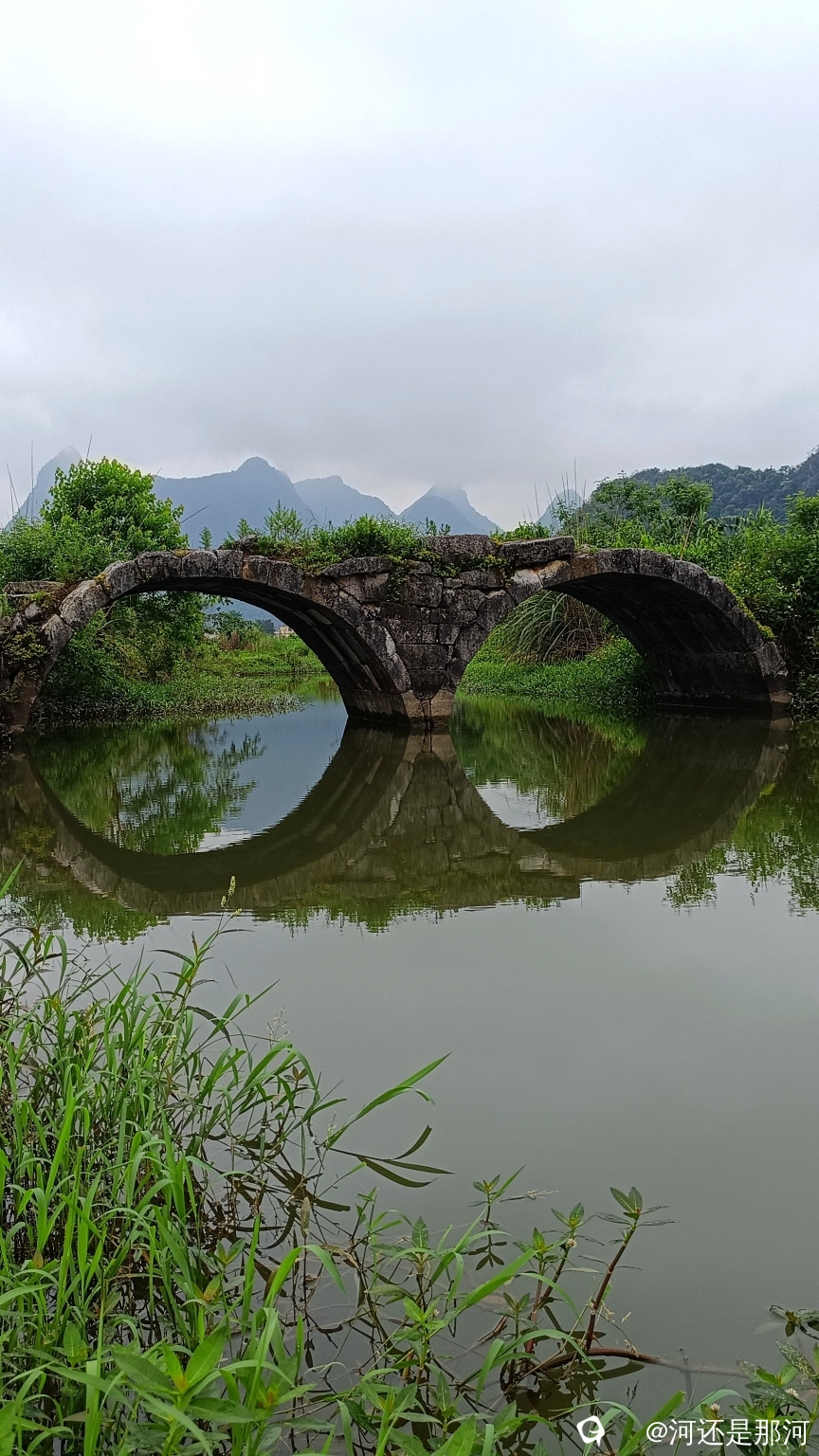 在李家湾田野中有一座古老的双孔石拱桥,弧线优美,它横跨在河的两岸,古老拱桥在清澈河水的倒影形成唯美的画面,放眼望去像极了一副眼镜,这座石拱桥静静守候在哪里,默默无言的承载着岁月的洗礼。