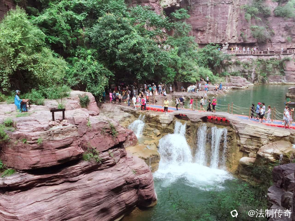 云台山风景名胜区。是一处以太行山岳水景为特色,以峡谷类地质地貌景观和历史文化为内涵,集科学价值和美学价值于一身的科普生态旅游景区。景区里的云台天瀑,是我国乃至亚洲单级落差最大的瀑布,被誉为华夏第一高瀑,是云台山的标志性景观之一。