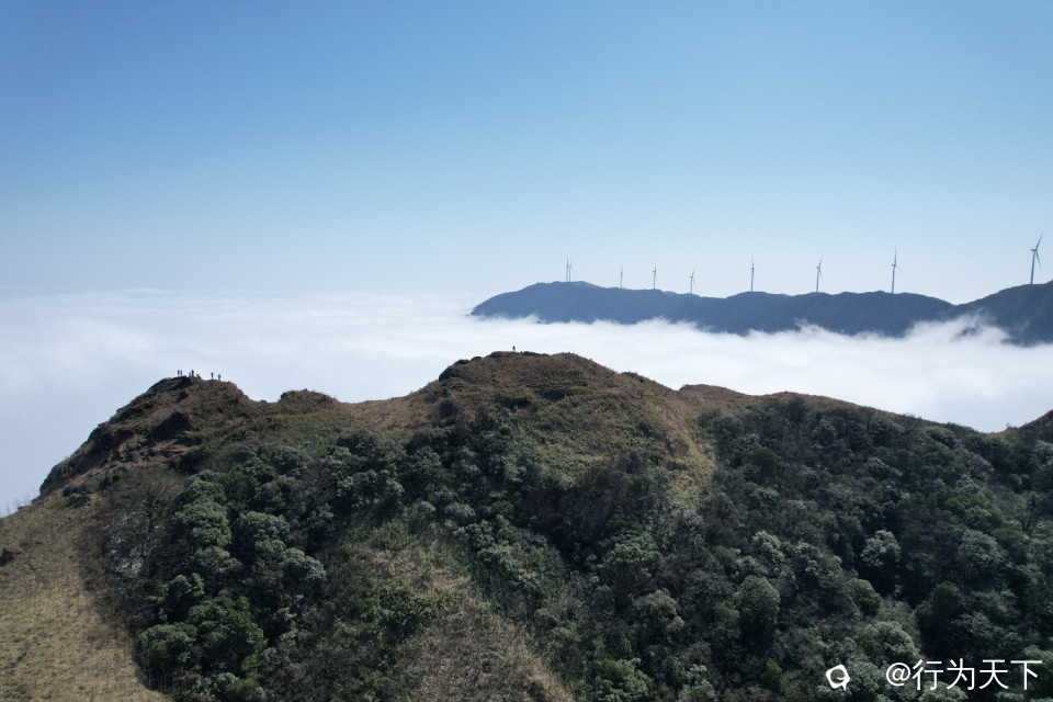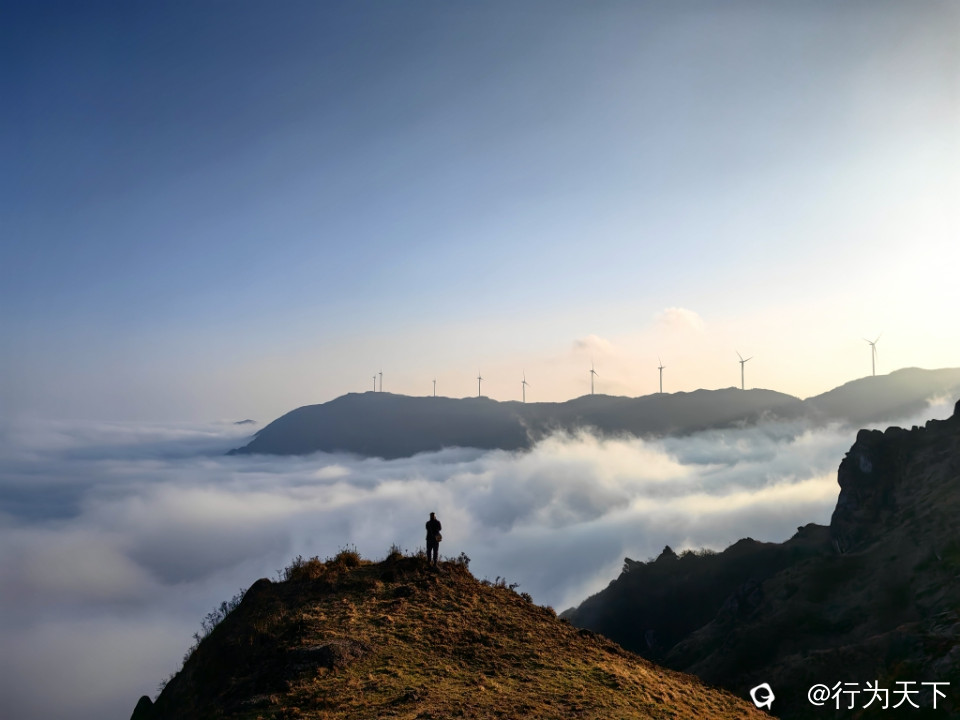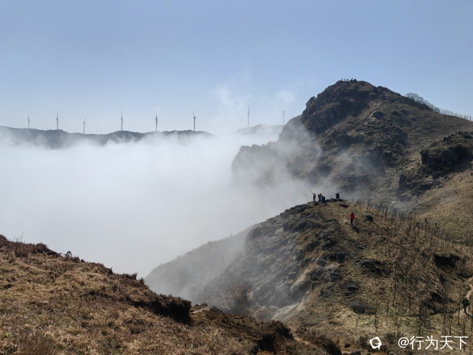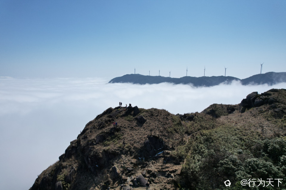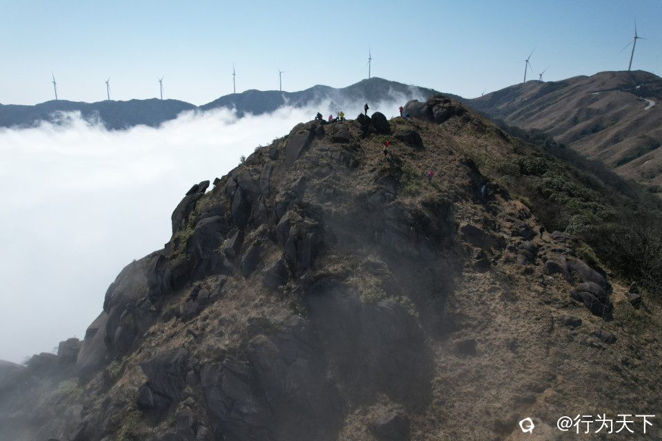 看着镜头里悬崖上一个个舞动的身影,是那样身姿矫健,那样欣喜若狂,就像是一个个无拘无束的小孩在嬉戏、玩闹般。云海时而在他们身边飘过,时而在悬崖上张牙舞爪,像是一群天使在腾云驾雾一般。我赶忙收拾好无人机,也像尽快加入这场云海盛宴,马不停蹄的往上爬。